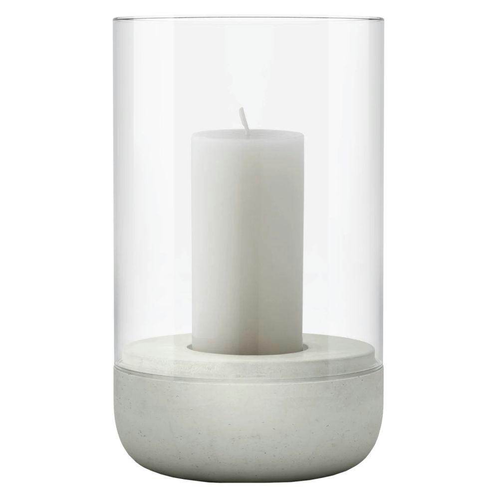 Material: Beton, Glas klar. Farbe: Beton. Maße:Ø 12 cm, Höhe 20 cm.