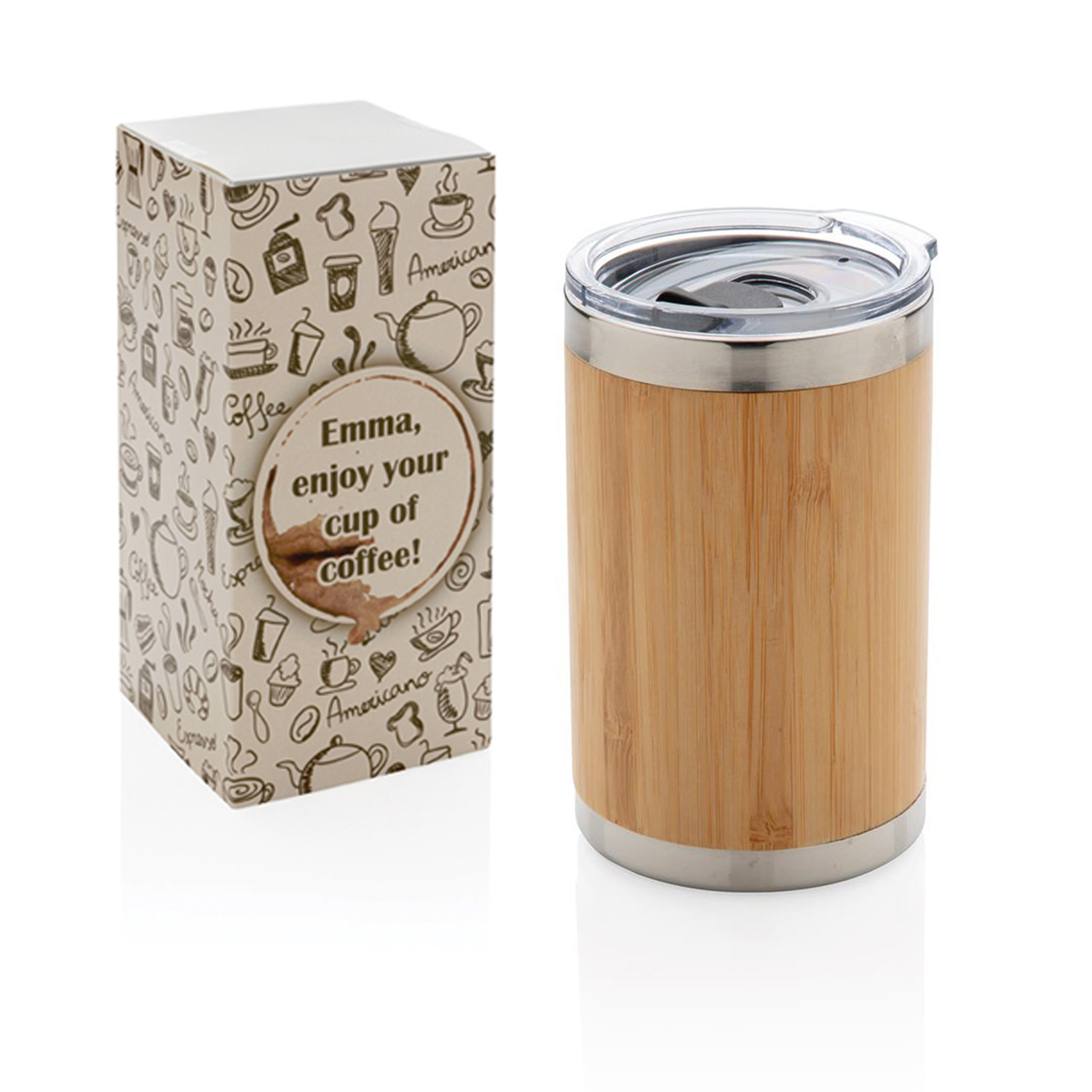 Dieser schicke Bambusbecher mit 304 Stainless Steel im Inneren hat einfach die perfekte Größe und passt unter fast alle Kaffeemaschinen. Hält Ihre Getränke bis zu 3h warm und bis zu 6h kalt. Inhalt: 270ml. Nur Handwäsche.