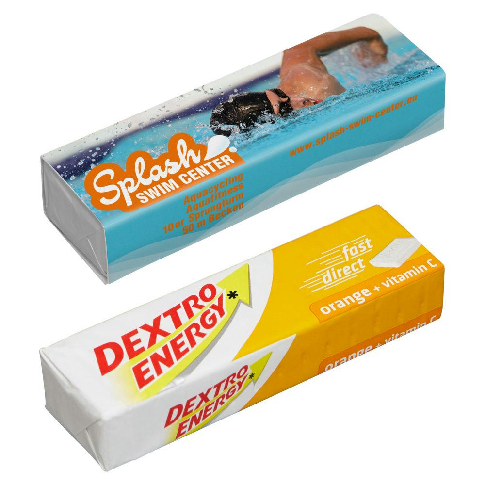 14 energieliefernde Dextrosetäfelchen in handelsüblicher Ausführung Papierwerbebanderole. Geschmack: Orange + Vitamin C. Maße: ca. 9,2 x 2,8 x 1,8 cm. Inhalt: ca. 47 g. Haltbarkeit: ca. 12 Monate.