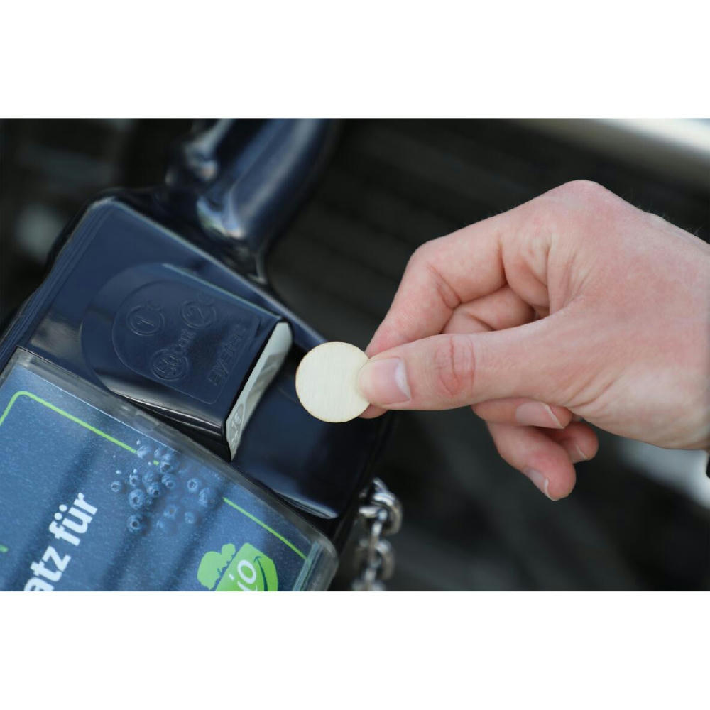 Einkaufswagenchip aus Schichtholz. Stärke ca. 2 mm.