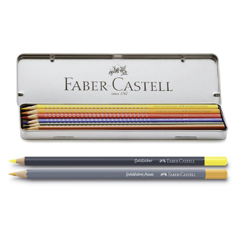 Wasservermalbare Buntstifte mit patentierter Soft-GRIPZone, ergonomische Dreikantform für ermüdungsfreies Malen, bruchgeschützte Mine, besonders weicher Abstrich, Politur auf umweltfreundlicher Wasserlackbasis. 6 Buntstifte als Set im Blechetui.