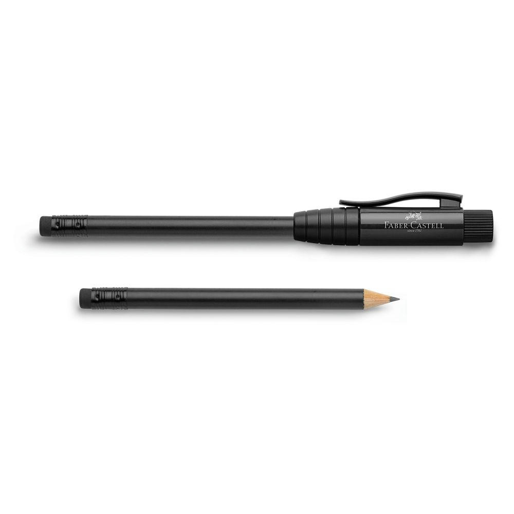 Mehr als ein Bleistift. Der Kunststoff-Aufsatz ist gleichzeitig Spitzenschoner, Stift-Verlängerer und Spitzer. Ein stabiler Clip hält den Stift sicher in der Tasche fest. Am Stiftende des Taschenbleistiftes aus naturfarbenem Holz mit schwarzer Oberfläche befindet sich ein Radierer. Preis inkl. 1c-Druck auf dem Verlängerer.