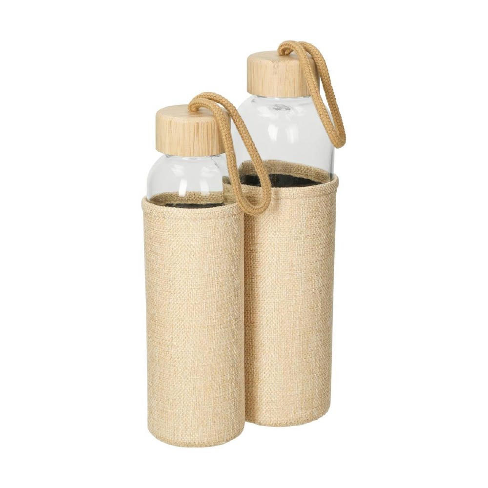 Große Trinkflasche aus Sodalime-Glas inklusive Schraubverschluss aus Bambus mit praktischer Schlaufe. Die griffige Hülle in natürlichem Look hält die Temperatur des Getränks länger konstant. Außerdem bietet sie bei heißem Inhalt zusätzlichen Schutz vor der erwärmten Oberfläche. Füllmenge: 0,70 Liter.