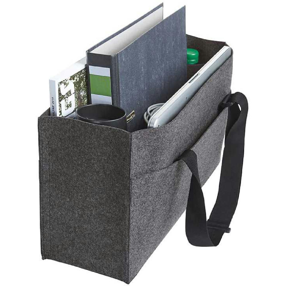 Organizer mit großem Hauptfach; flaches Einsteckfach, Reißverschluss-Einsteckfach, zwei Fixierungsschlaufen z.B. für Getränkeflasche, Visitenkartenfach, drei Einsteckfächer innen; drei Einsteckfächer außen; längenverstellbare Tragegurte; Befestigungslasche z.B. für den Autogurt.