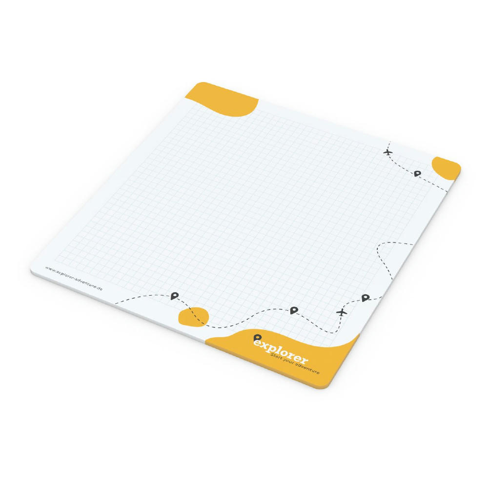 Neuer und altbewährter Klassiker: Plus-Block Haftnotiz-Mousepad Bestseller als Unterlage für Computermaus und zum schnellen Festhalten von Notizen – individuell gestaltbarer Werbeeindruck in 4C-Quality auf gesamter Fläche der 50 Blatt des weißen Haftpapiers inklusive