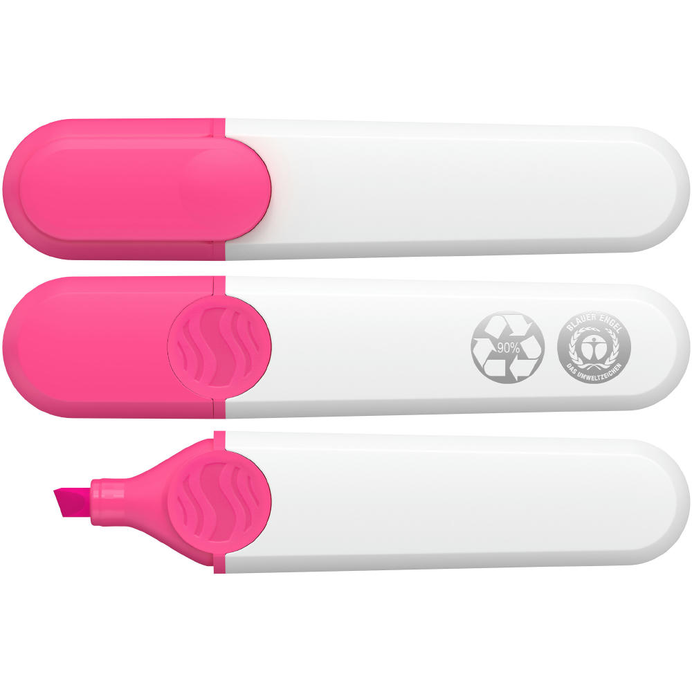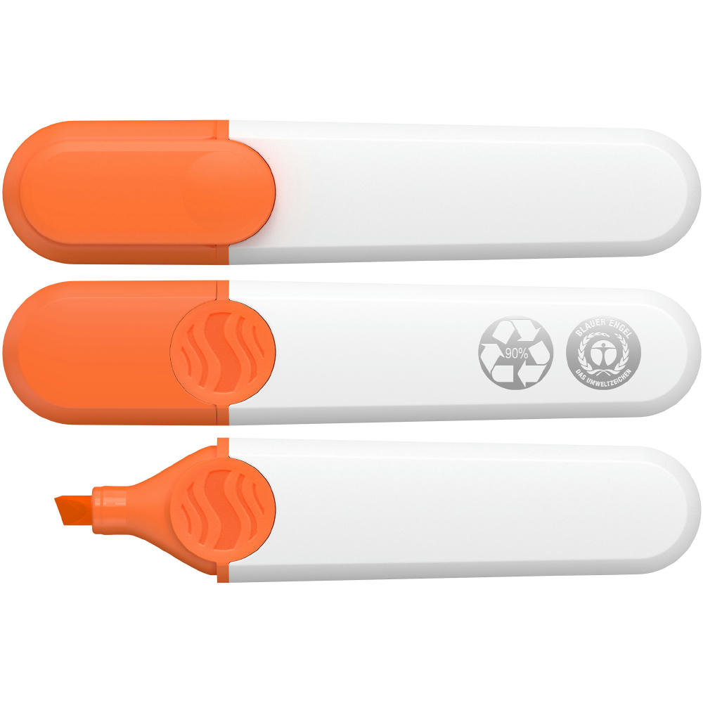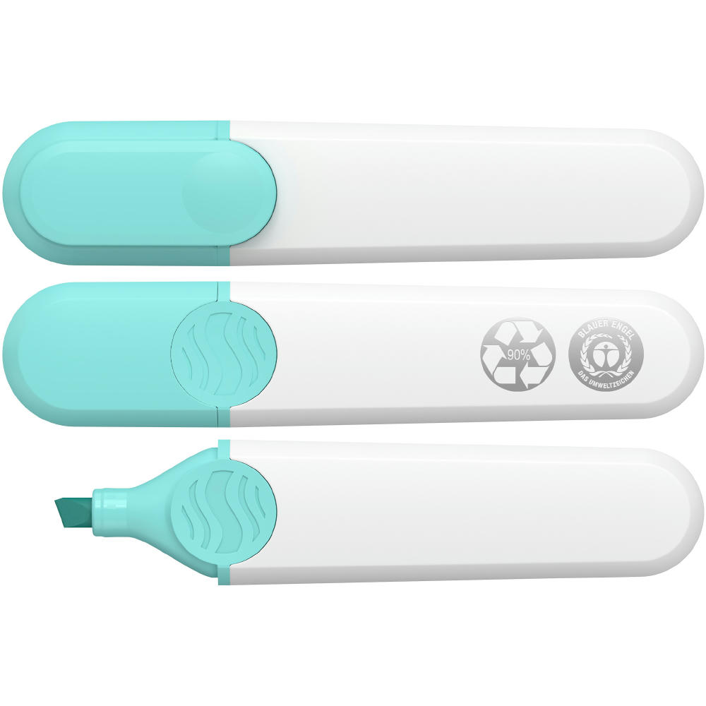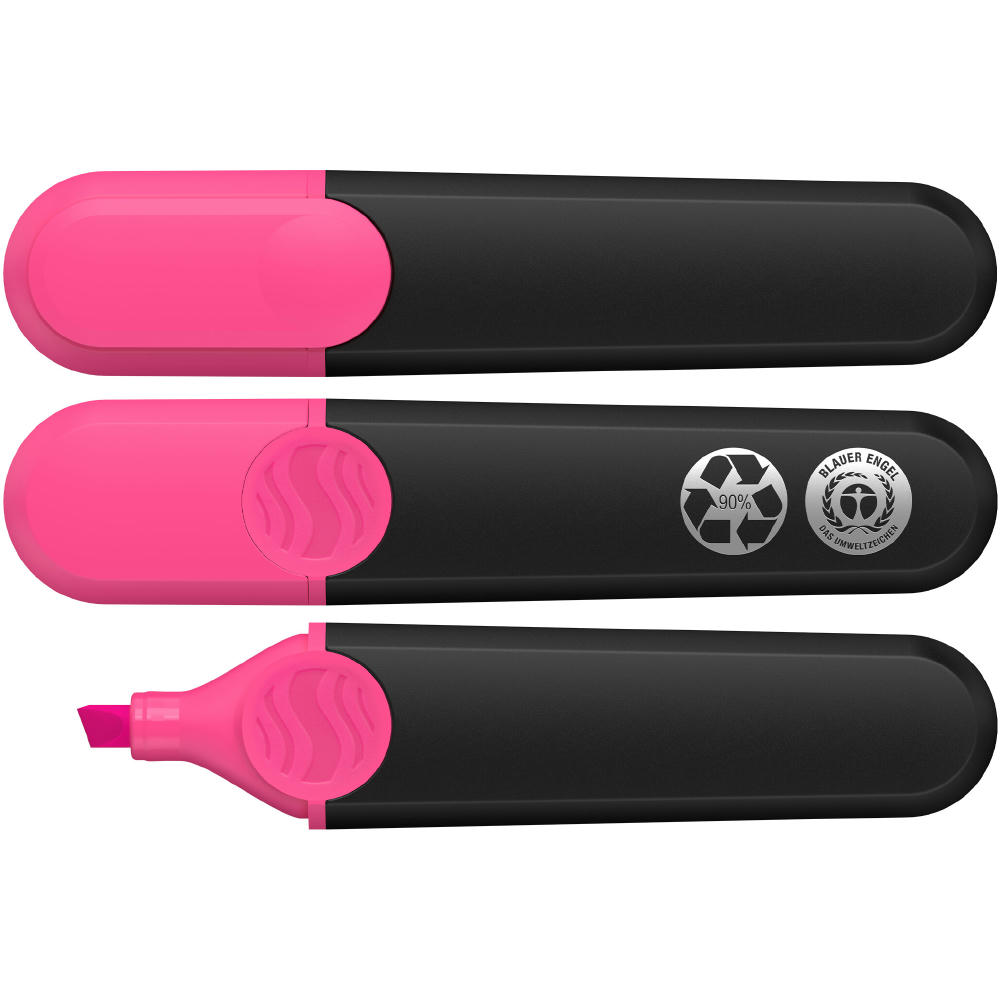 Textmarker aus opakem Kunststoff mit fein mattierter Oberfläche. Ausgezeichnet mit dem weltweit bekanntesten Umweltzeichen "Blauer Engel". *Gehäuse aus über 90 % recyceltem Kunststoff. Der innere Speicher und die Spitze bestehen aus Recyclingfasern, die Tinte wird aus biobasierten Rohstoffen hergestellt. Leuchtstarke, lichtbeständige Tinte. Für Normal-, Copy- und Faxpapier. Keilspitze 1+5 mm. Produkt mit finanziellem Klimabeitrag: Kompensation in Höhe der unvermeidbaren Emissionen in ein zertifiziertes Klimaschutzprojekt. Gehäuse: schwarz/grün. Schreibfarbe: grün.