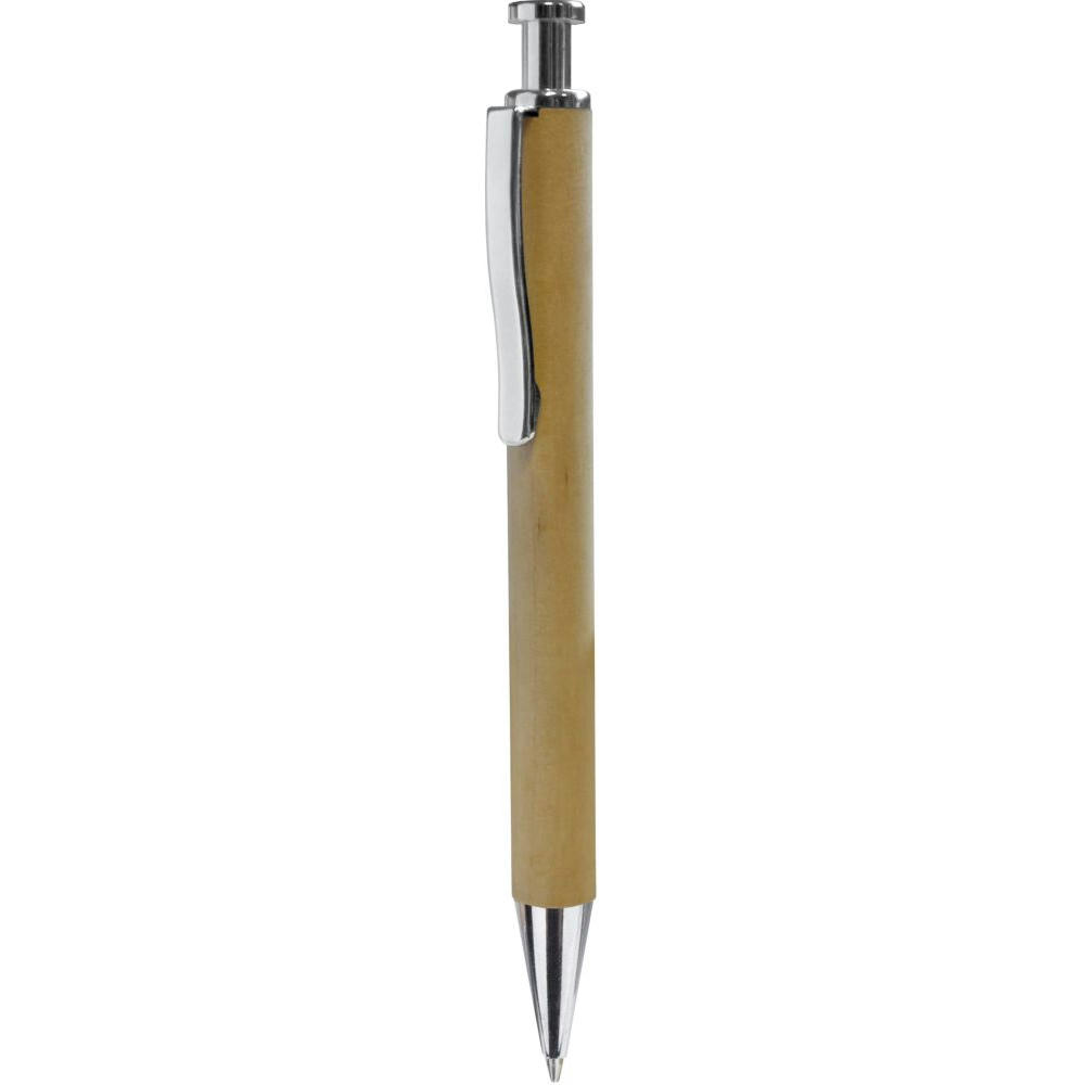 Druckkugelschreiber aus Holz (Birke) mit Metallclip. Metall-Großraummine blauschreibend.