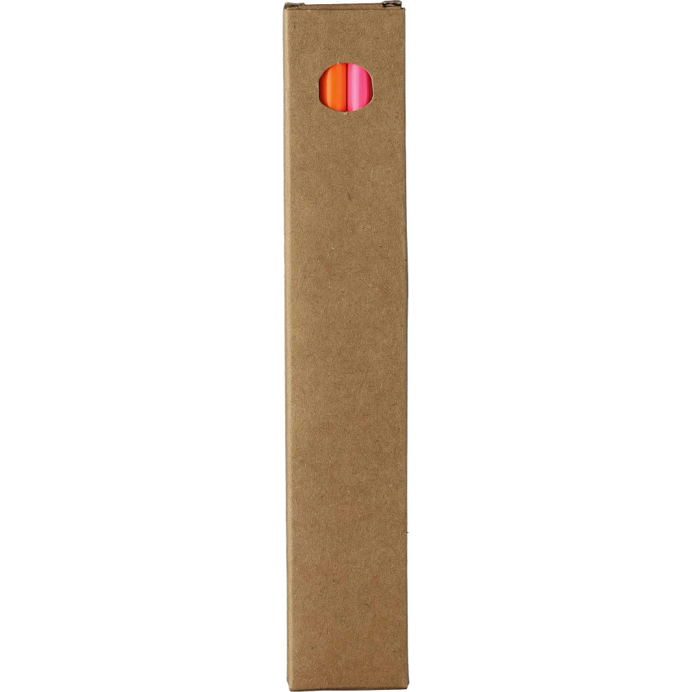 Buntstifte-Set mit 4 Farbstiften (gelb, orange, rosa und grün) in Kartonbox.