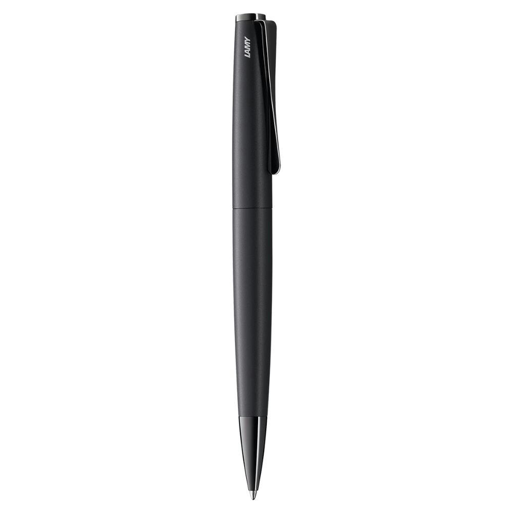 Der LAMY studio Lx all black in schwarzem Mattlack-Finish und schwarz glänzender PVD Beschichtung an Clip und Feder.