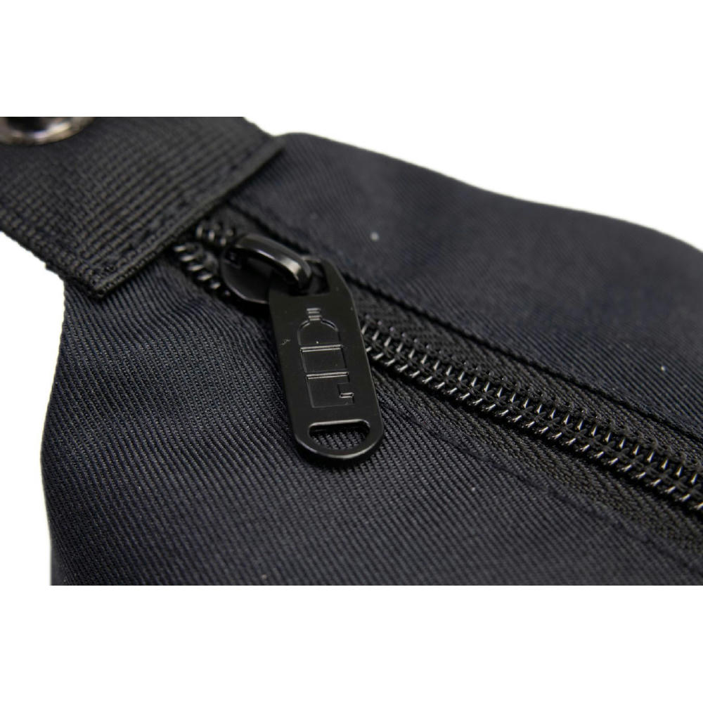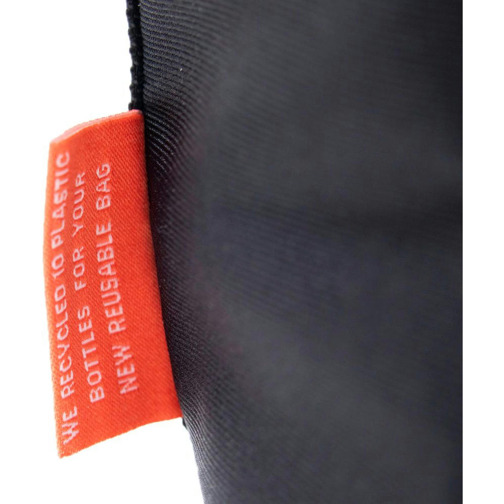 Unisex-Kulturbeutel mit multifunktionalem Griff mit praktischem Druckknopf und Haken zum Aufhängen. Der Kulturbeutel besteht aus 10 recycelten PET-Flaschen.