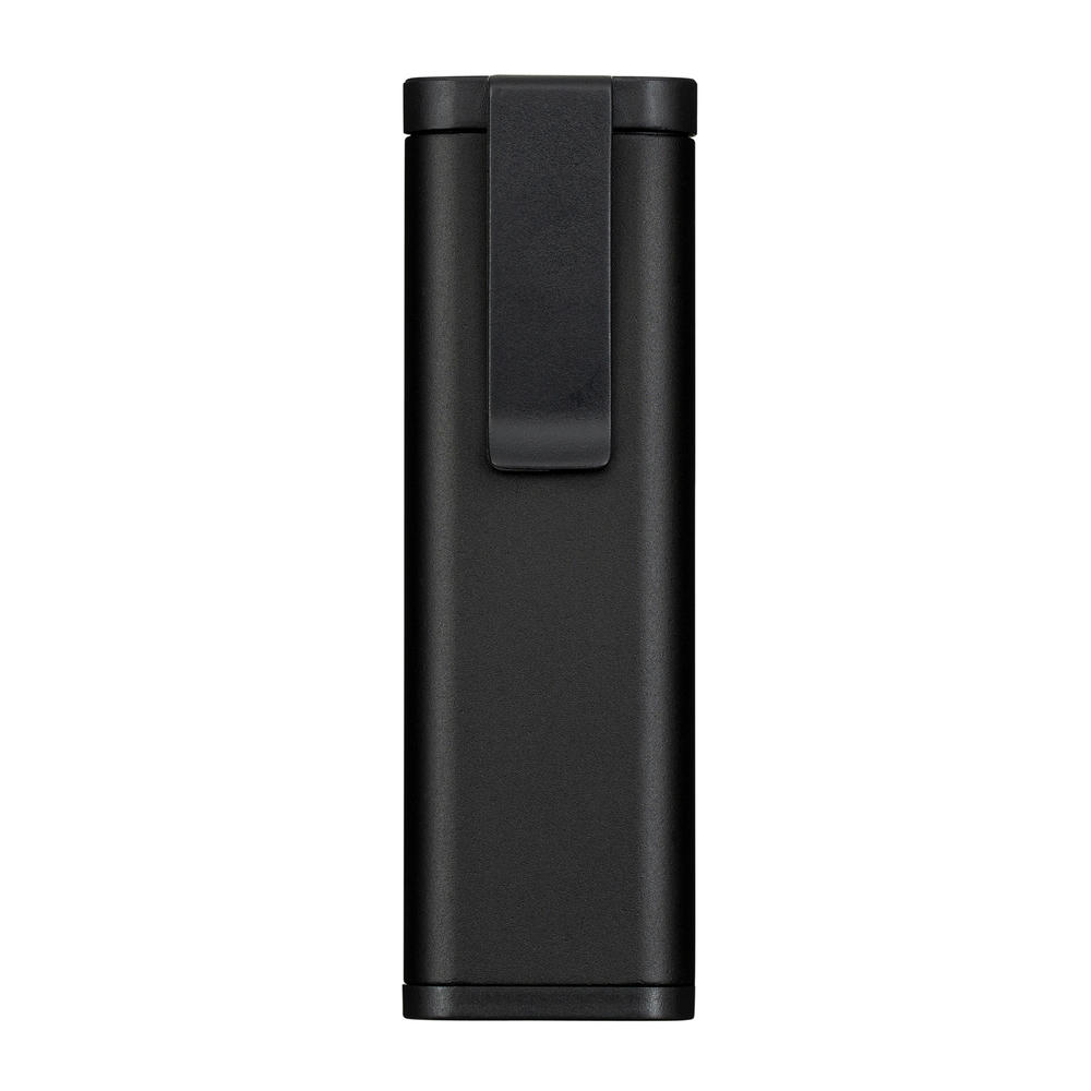 Die Leuchte ist 80 Lumen stark und über einen leicht bedienbaren An/Aus-Knopf zu steuern. Das rechteckige Kästchen aus eloxiertem Aluminium lässt sich aufschieben und enthält sechs Bits und einen Bithalter. Enthalten sind jeweils drei verschiedene Größen eines Kreuz- und Schlitzschrauben-Bits. Inkl. Gürtelclip.