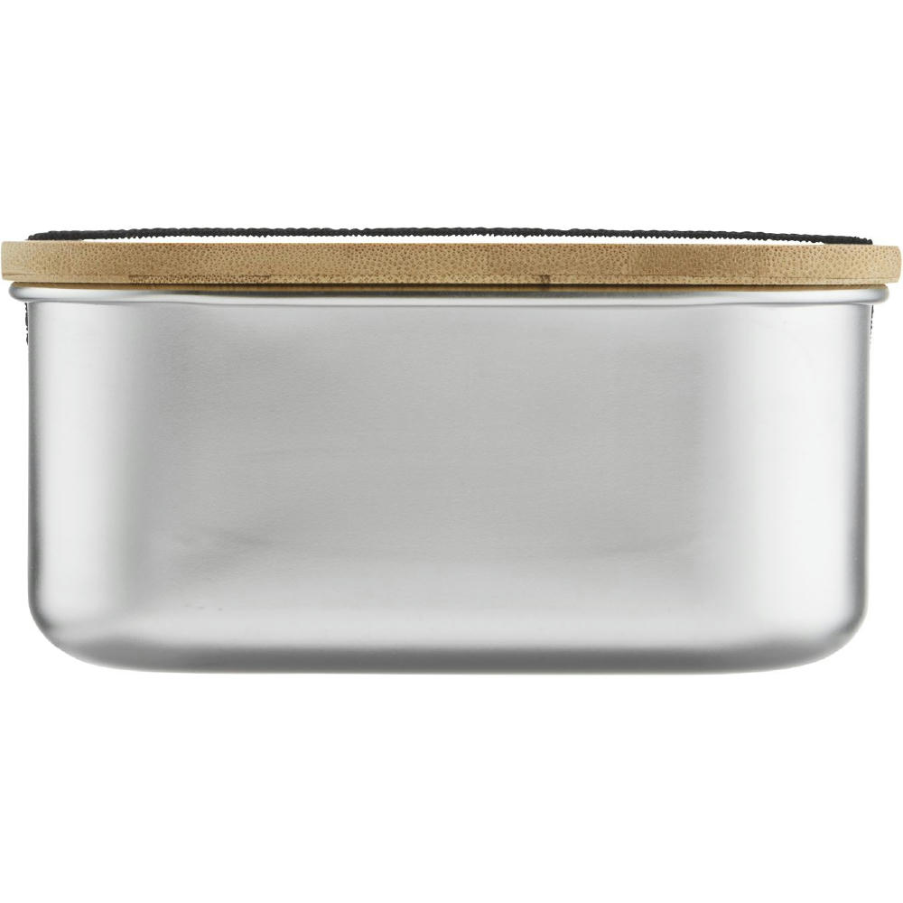 Edelstahl-Lunchbox 1,35L mit Bambusdeckel und elastischem Halteband. Spülmaschinengeeignet (mit Ausnahme des Deckels). Auch in der Größe S /1,0 L erhältlich.