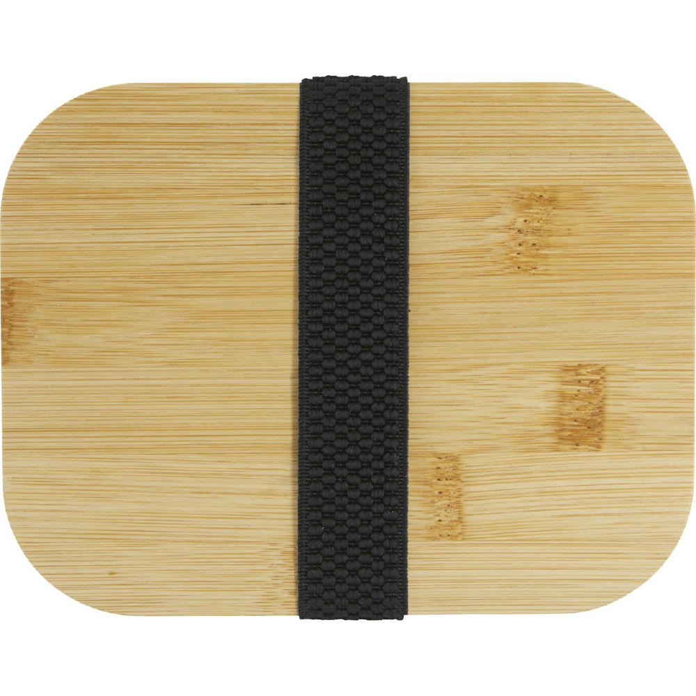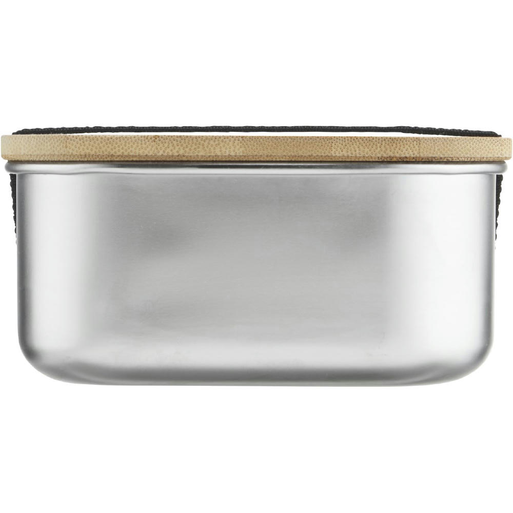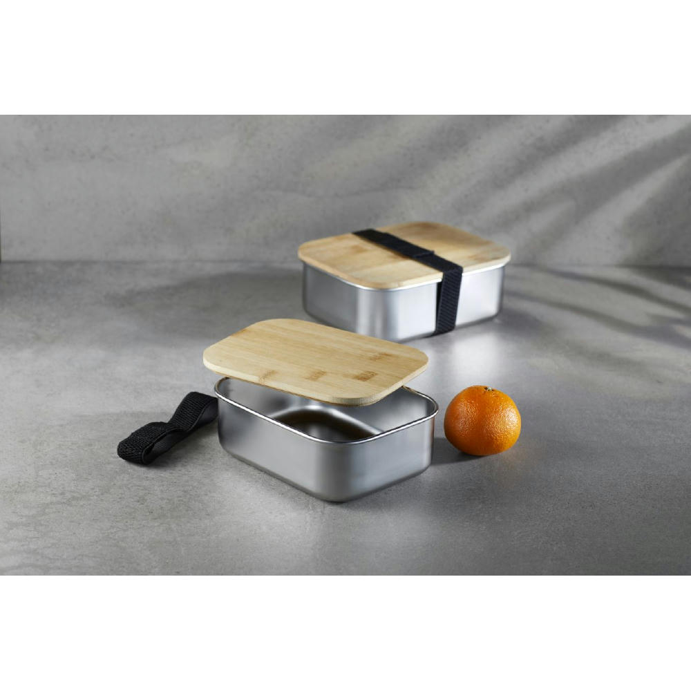 Edelstahl-Lunchbox 1,0 L mit Bambusdeckel und elastischem Halteband. Spülmaschinengeeignet (mit Ausnahme des Deckels).