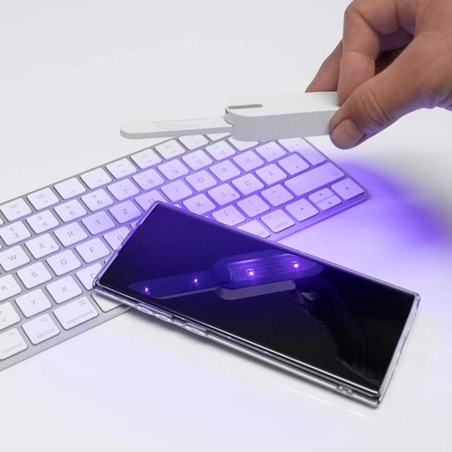 Metmaxx® MobileCleaner ProUV mit UV-C Licht Der MobileCleaner ProUV desinfiziert mit Hilfe von UV-C Licht alle möglichen Oberflächen (z.B. Smartphoses, Tastaturen oder Telefonhörer). Zudem erfolgt die Desinfektion umweltschonend, da die UV-C Lampe ohne Zugabe von Chemikalien und der Freisetzung von Ozon auskommt. Im praktischen Taschenformat mit den Maßen 77 x 26 x 15 mm, ist der MobileCleaner der perfekte Begleiter im Alltag. Das weiße Gerät ist mit einer wiederaufladbaren Batterie ausgestattet (USB Type C). Des Weiteren ist der MobileCleaner ProUV mit einem Sicherheitssystem ausgestattet. * Ein eingebautes Gyroskop schaltet den Stick aus, wenn dieser mit der LED nach oben gedreht wird, damit der Anwender nicht direkt in das UV Licht sehen kann. (Direkter UV-C Licht Blickkontakt kann die Augen schädigen!) * mit eingebautem UV-C Licht / UV-Licht neutralisiert Viren, Keime und Bakterien* (Quelle*: Bundesamt für Strahlenschutz) * im handlichen Taschenformat * Flächen desinfizieren ohne Einsatz von Chemikalien * mit Ladekabel und Halteband z. B. für Ihren Schlüsselbund * im Designkarton (Klimaneutral transportiert)