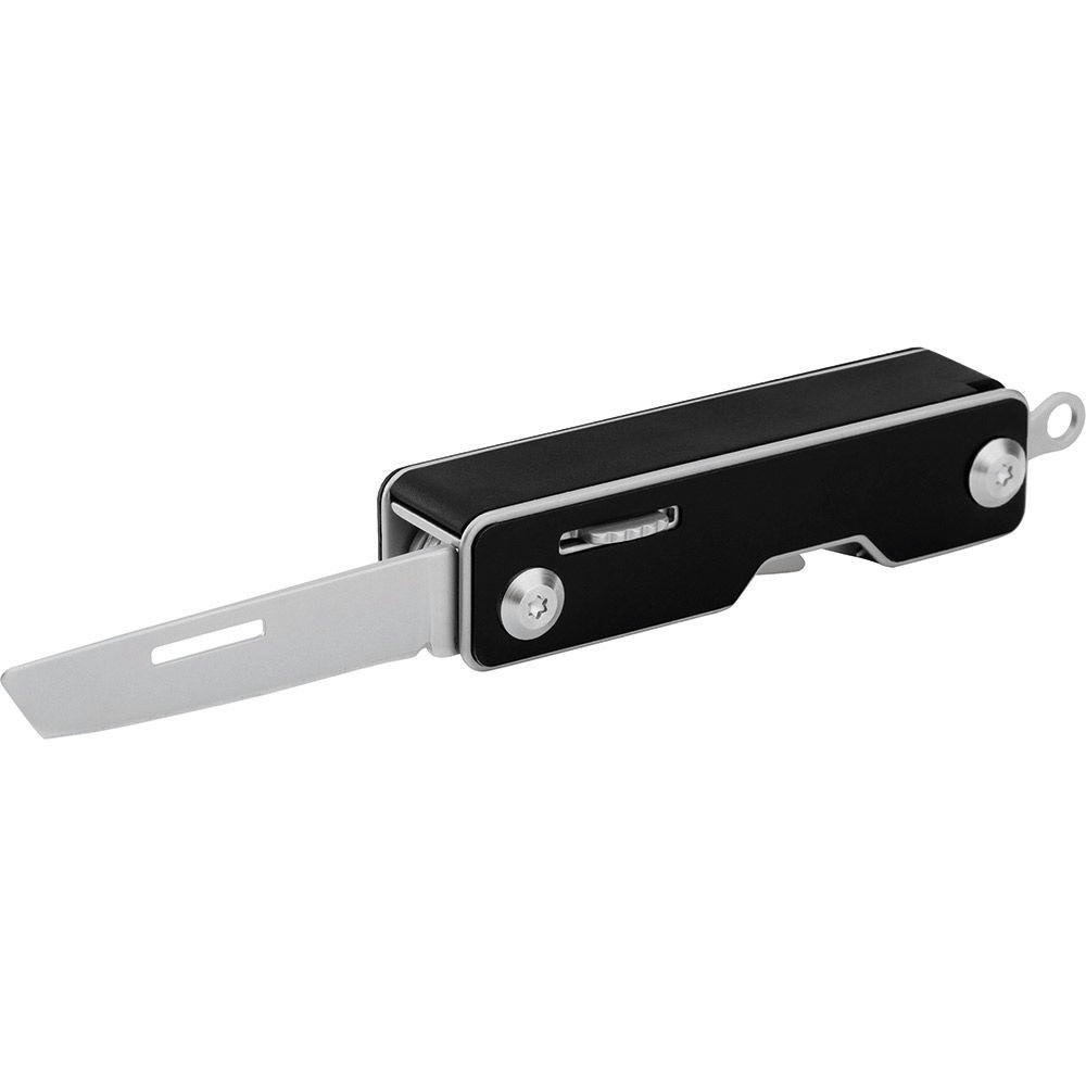 Multifunktions-Werkzeug mit 12 Funktionen. Für Rechts- und Linkshänder geeignet. Funktionen: Taschenmesser (Klingenlänge 53 mm), Schere, Metallfeile, Schlitzschraubendreher, Phillips-Schraubendreher, Dosenöffner, Flaschenöffner, Hakenklingen-Cutter, Smart