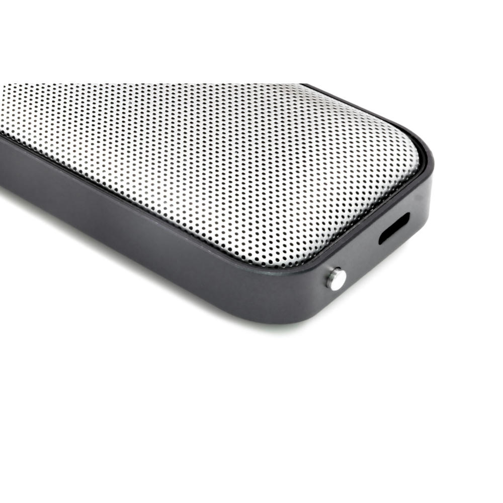 Schlanker kabelloser Lautsprecher aus Aluminium und veganem Wildleder. 2-Watt-Treiber liefert hochwertigen Klang. Dank der TWS-Stereokopplung können zwei Nanos miteinander verbinden werden.