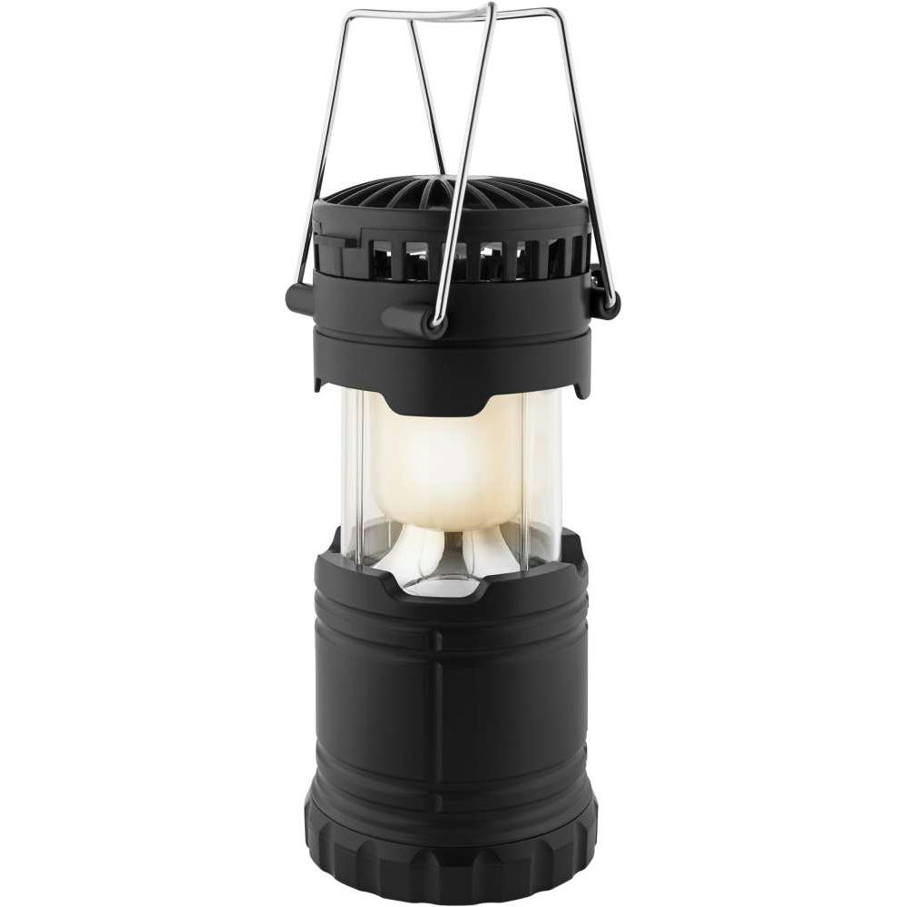 Lichtwunder für die Terrasse und Unterwegs, eco friendly, da wiederaufladbar mit warm-weißem regulierbarem LED-Licht und für heiße Tage mit aufstellbarem 2- stufigem Ventilator, mit USB-C Anschluss und 500 mAh Akku, incl. Aufhängebügel.
