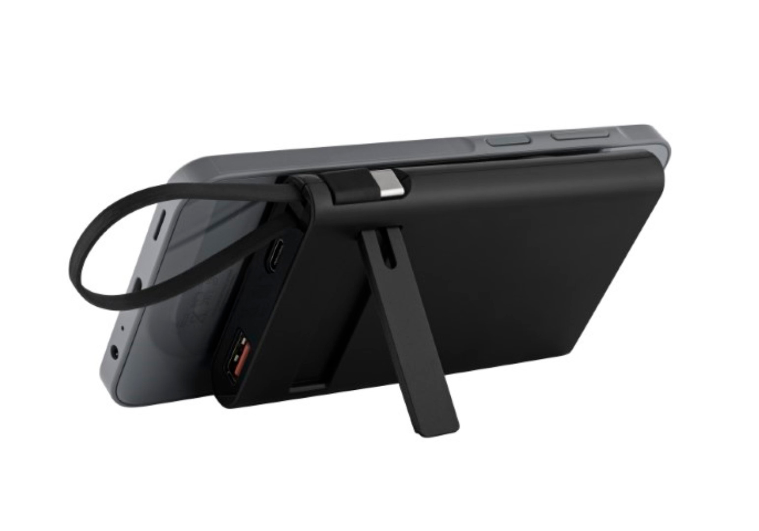 Leistung in einem kompakten Format. Mit PD (Power Delivery) 20 Watt Fast Charging Technologie (kabelgebunden) – Dualport In- oder Output. Schnelles kabelloses Laden per Magsafe® Wireless Fast Charging (15 Watt inkl. 3 Watt für Airpod®), zweites Induktionsfeld speziell für die Apple® Watch (2.5W) optimiert. Auch andere Geräte können mit dem s zusätzlich eingebauten Kabels (USB-C) sofort und überall mit Energie versorgt werden. Der integrierte Sicherheitskreislauf (SecuityCircuit) schützt vor Über-, Unterladung, Überspannung und Überhitzung. Hergestellt aus recycelten Materialien. Mit verstecktem Handyaufsteller. In Craft Paper Box.