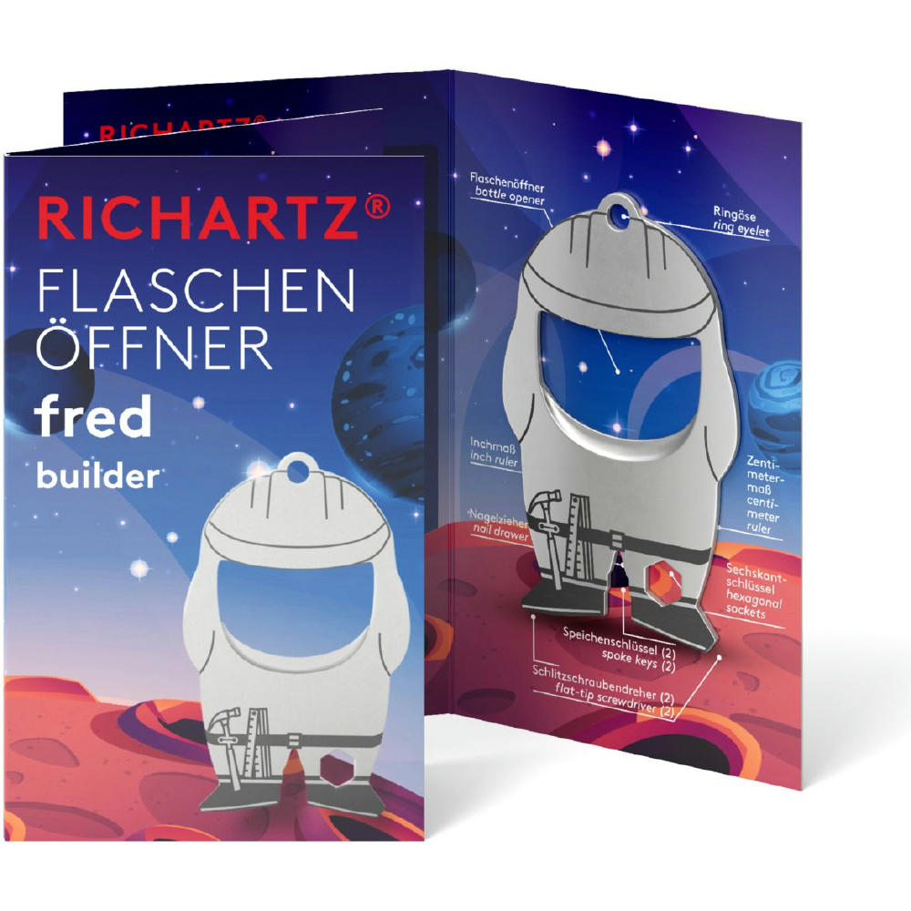 Überzeugt durch seine kompakte Form und passt daher an jeden Schlüsselbund. Der perfekt konstruierte Flaschenöffner löst jeden Kronkorken und mit 9 weiteren nützlichen Funktionen wird er schnell zum unverzichtbaren Begleiter im Alltag. Preis inkl. Lasergravur und individuell gestalteter Verpackung.