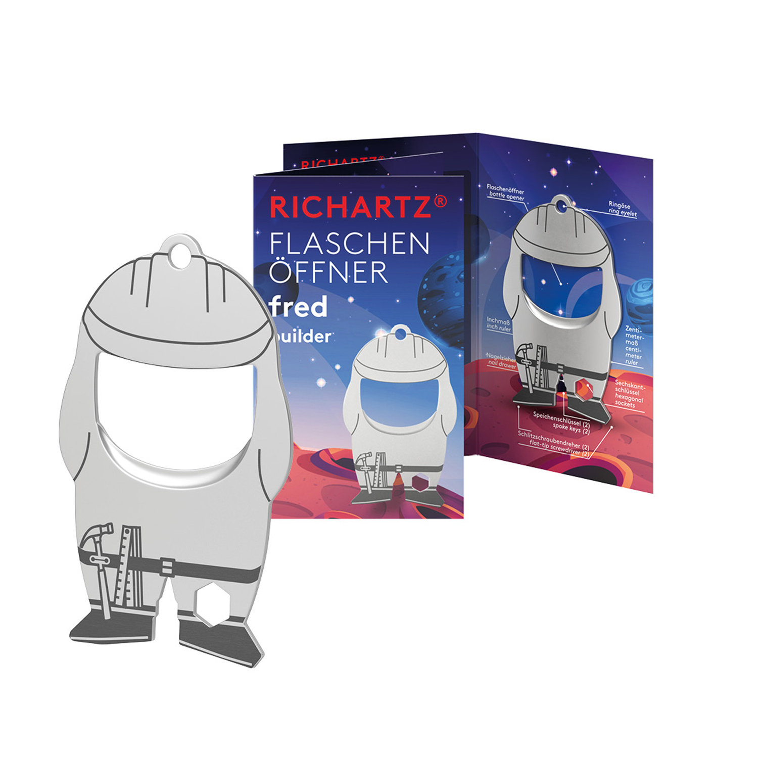 Überzeugt durch seine kompakte Form und passt daher an jeden Schlüsselbund. Der perfekt konstruierte Flaschen­öffner löst jeden Kronkorken und mit 9 weiteren nützlichen Funktionen wird er schnell zum unverzichtbaren Begleiter im Alltag. Preis inkl. Lasergravur und individuell gestalteter Verpackung.