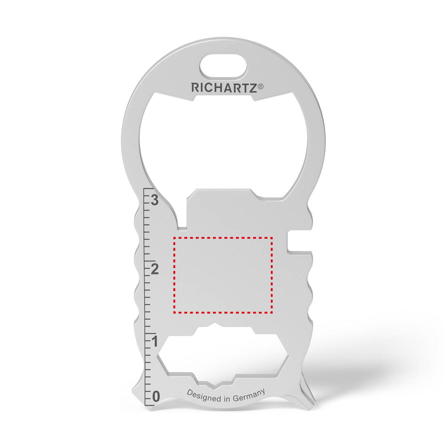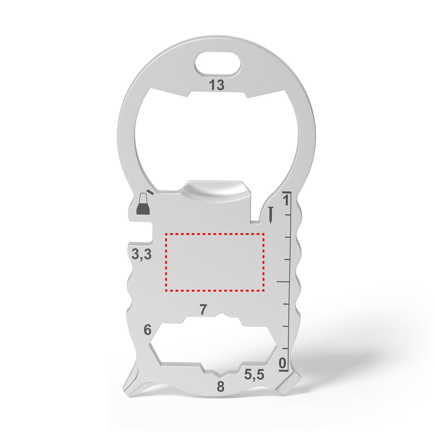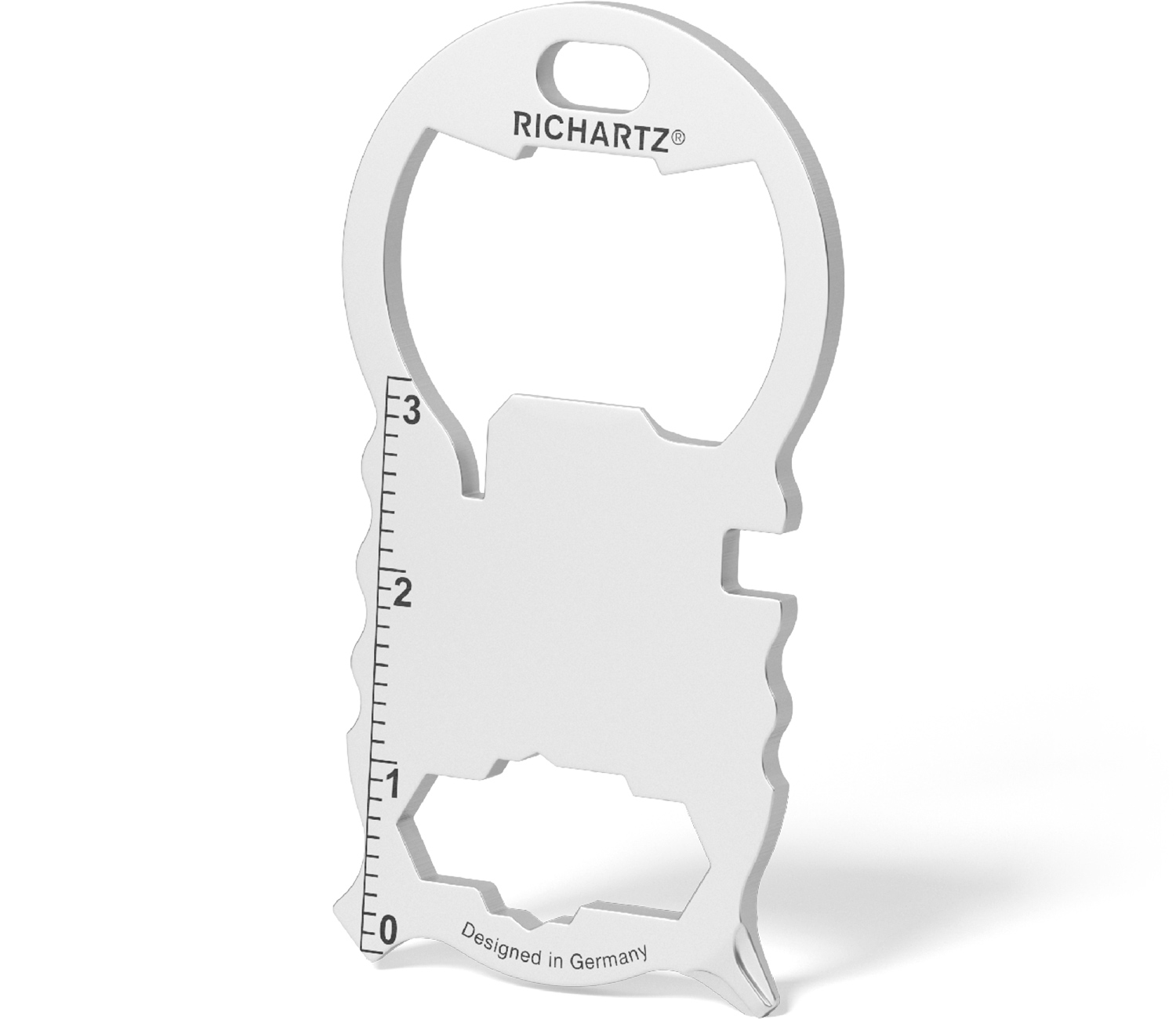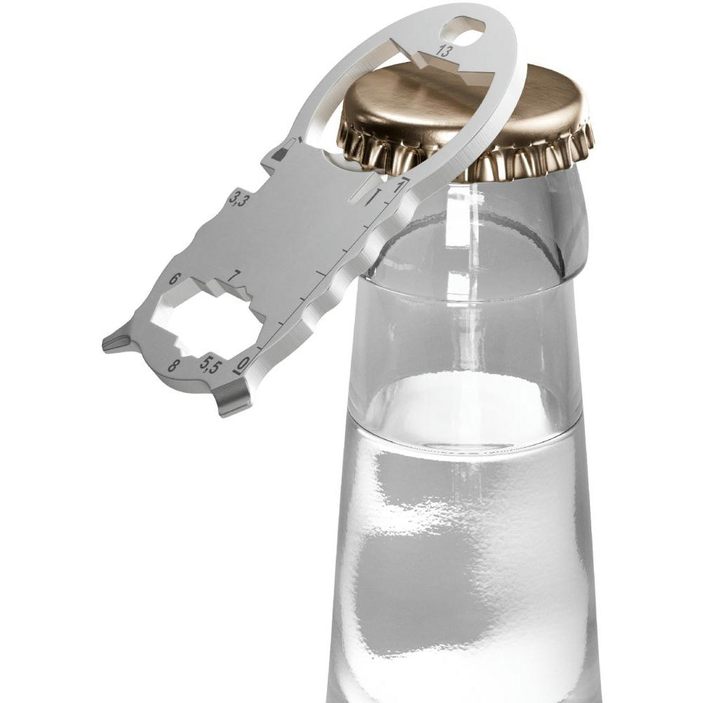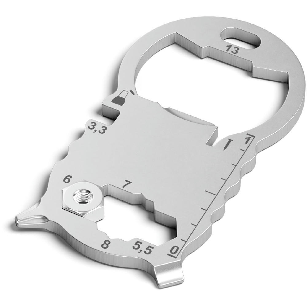 Kleines, kompaktes Multitool mit 13 Funktionen, aus hochwertigem, matt gestrahltem Edelstahl gefertigt. Passt an jeden Schlüsselbund. Inkl. Lasergravur und individuell gestalteter Verpackung.