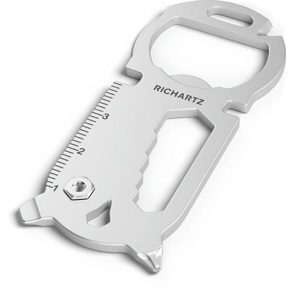 Das kompakte Multifunktionstool ist ein unentbehrlicher Begleiter und passt an jeden Schlüsselbund! 16 Funktionen: Kapselheber, kleiner und großer Schlitzschraubendreher, Kreuzschlitzschraubendreher, Kabelabzieher, zwei Fahrradspeichenschlüssel, sieben Sechskantschlüssel, Zentimetermaß, Nagelzieher. Ab 250 St. indiv. Verpackungsdruck und Lasergravur auf Produkt gegen Aufpreis möglich.