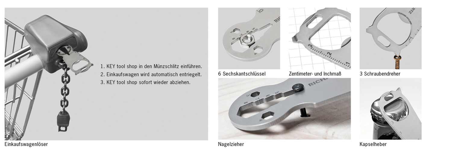 Einkaufswagenlöser, Mailing, Marke, Mini-Tool, Multitools, Tools, Werkzeug