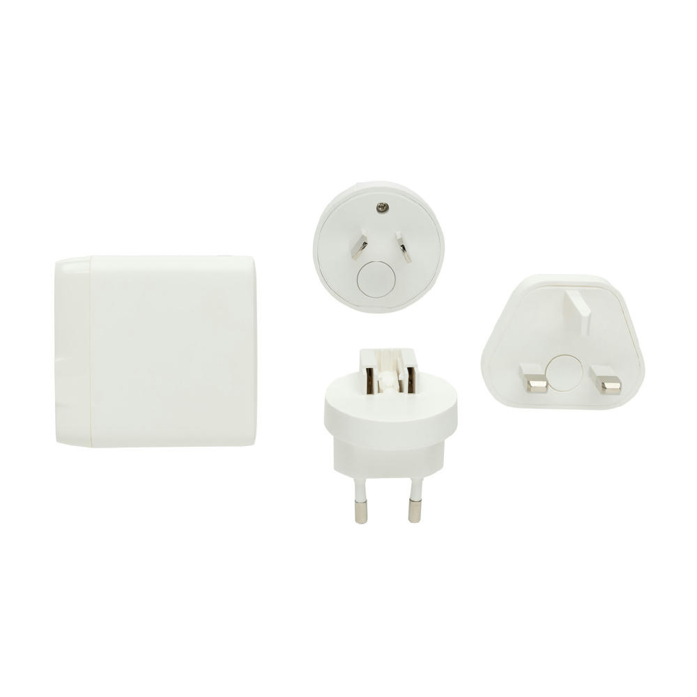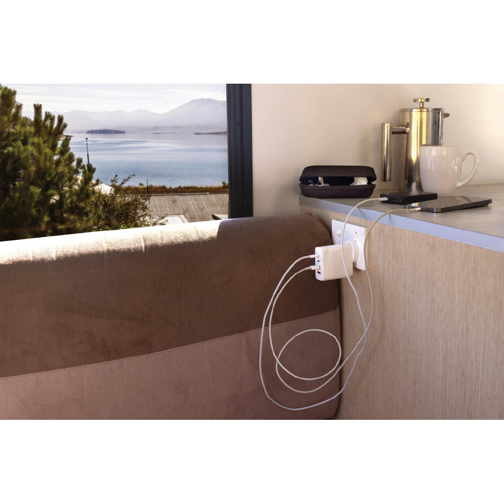 Mit 2 USB-C-Anschlüssen und 2 USB-A-Anschlüssen. Mit integriertem Stecker für die USA und zusätzlichem EU-, UK- und AUS-Stecker zum Aufladen in mehr als 100 Ländern weltweit. Maximaler Output: 5V/3A. Input: AC100-240 V. In praktischer Reisetaschet. Gefertigt aus RCS recyceltem ABS (Gesamtanteil an recyceltem Material: 57% basierend auf dem Gesamtgewicht des Artikels). Die RCS-Zertifizierung gewährleistet eine vollständig zertifizierte Lieferkette der recycelten Materialien.