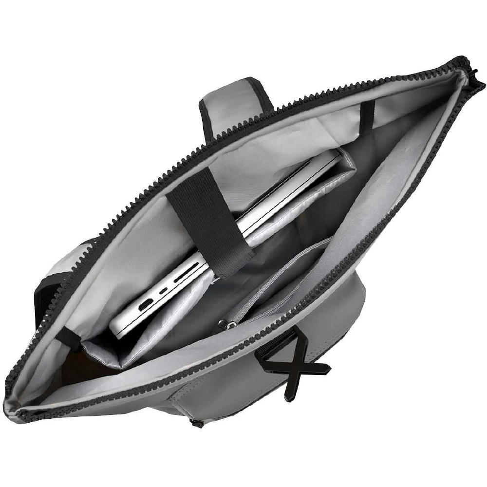 Dieser Rucksack verfügt über ein Reißverschluss-Hauptfach mit praktischem Klickverschluss (X-Verschluss) und ein gepolstertes Laptopfach für Geräte bis zu 15". Die verstellbaren, gepolsterten Schultergurte und der gepolsterte Rücken bieten optimalen Tragekomfort. Schwarz-reflektierende Streifen sorgen für bessere Sichtbarkeit in der Dunkelheit. Ein zusätzliches Geheimfach auf der Rückseite bietet Stauraum für Ihre Wertsachen.