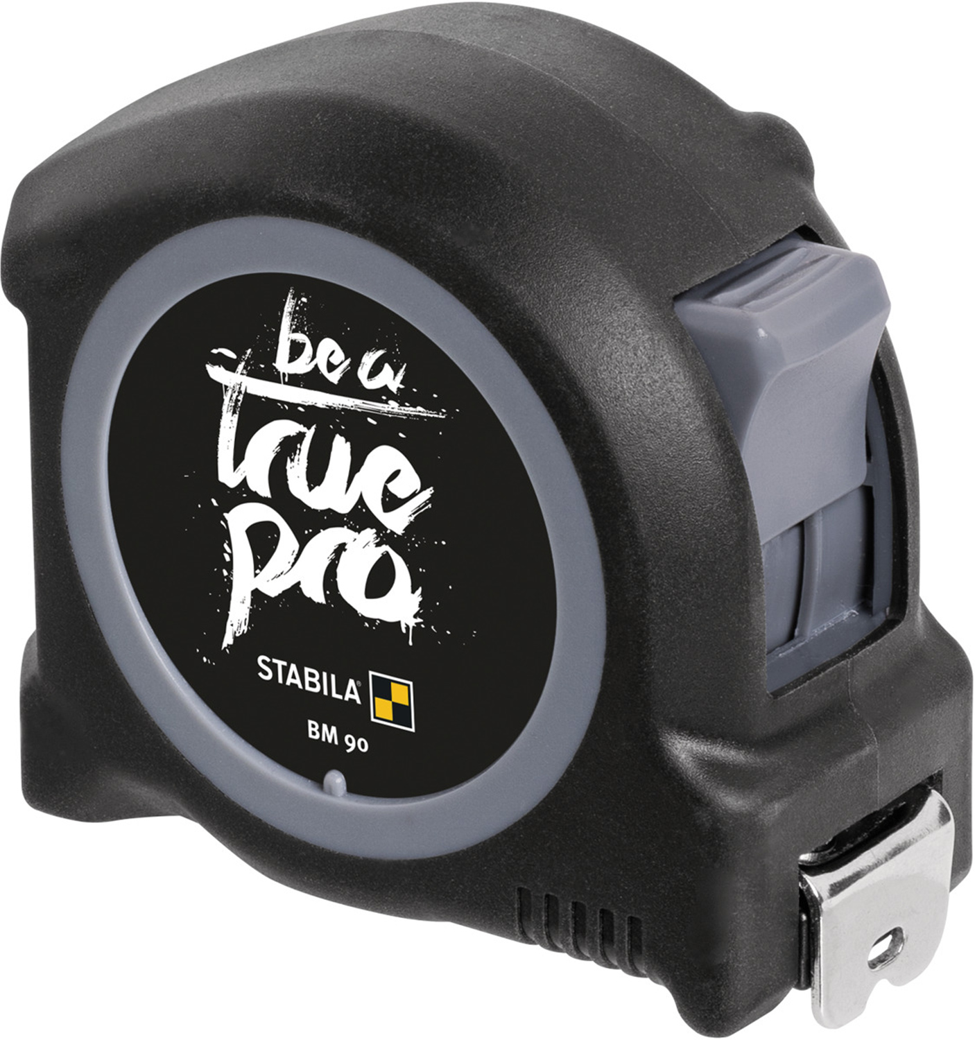 Skala in cm/mm. ABS-Gehäuse mit stoßabsorbierendem Softgrip-Mantel und hochwertigem 3D-Aufkleber. Bremse zum Stoppen und Fixieren des Bandes. Weißes Stahlband in Genauigkeitsklasse II mit widerstandsfähiger Lackierung zum Schutz der Skala. Rote Zehnerzahlen für schnelles Orientieren und Ablesen. Beweglicher Anfangshaken mit Nagel-Öse. Automatischer, kraftvoller Bandrücklauf. CE-Konformität. Preis inkl. Doming.
