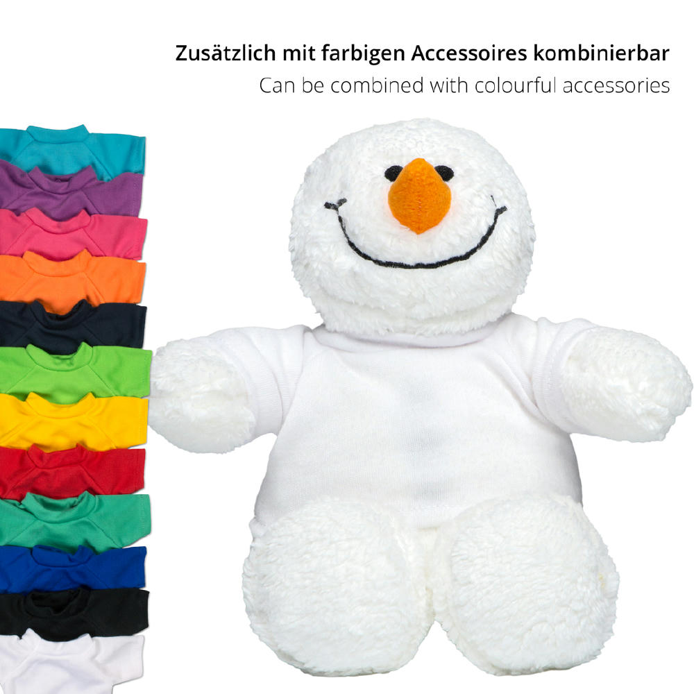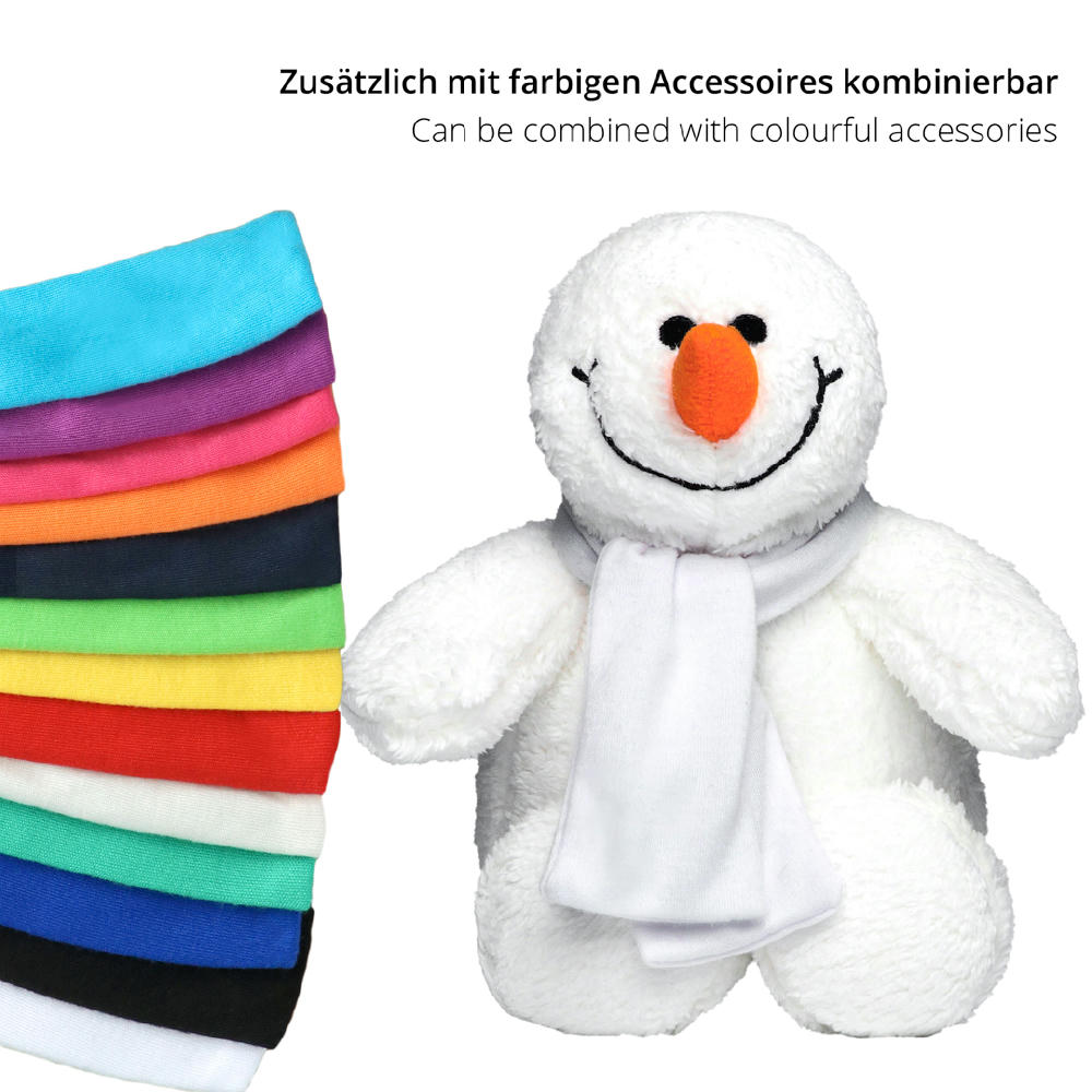 OEKO-TEX® Schneemann Sven macht einfach alles mit. Er liebt Umarmungen und zaubert Jung und Alt ein Lächeln ins Gesicht. Geprüft auf Schadstoffe (OEKO-TEX®, A08-0261 Hohenstein HTTI, oeko-tex.com/standard100). Ein besonderer Hingucker sind unsere individuell bedruckbaren Accessoires für Kuscheltiere, mit denen Sie aus der Masse sicher herausstechen. Kleiden Sie Ihr Maskottchen mit Dreieckstüchern, Schals oder T-Shirts um maximale Aufmerksamkeit zu erzeugen.