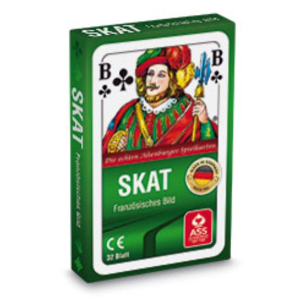Skat deutsches oder französisches Bild, Standardvorderseitenbild mit individueller Werberückseite; Blattanzahl: 32 Blatt + 1 Deckblatt; Format: 59,0 x 91,0 mm, abgerundete Ecken; Bildspiegel: 51,0 x 83,0 mm; Material: Spielkartenkarton "Premium"; Druck: 4/1-fbg. + Lack, * Motive nicht angeschnitten *; Verarbeitung: 33 Blatt vollcellophaniert und in Kunststoffetui (PP), eingelegt, in handliche Umkartons verpackt. Geben, reizen, stechen und punkten: Skat, das beliebteste Kartenspiel der Deutschen bringt mit Werbung auf den Kartenrückseiten Marken ins Spiel. Spielerische Werbeeffekte sind garantiert: Die Werbebotschaft bleibt so immer im Blick des Kunden und kann so längerfristige Effekte erzielen. Zeit für Werbung? Zeit für Spielkarten! Dieses Jahr feiert das beliebte Kartenspiel sein 200 jähriges Jubiläum. SKAT deutsches Bild, die echten Altenburger Spielkarten, 32 Blatt + Deckblatt im Format 59 x 91 mm mit individueller Rückseitengestaltung, 33 Blatt vollcellophaniert und in Kunststoffetui eingelegt.