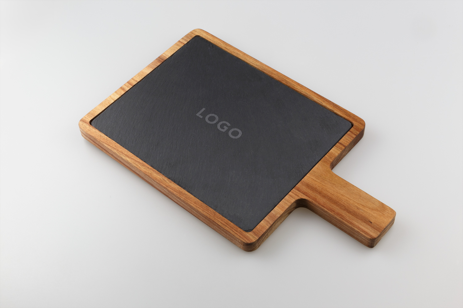 Stilvolles Servierbrett aus Akazienholz mit eingelassener Naturschieferplatte. Kratzfest, stoßbeständig und lebensmittelecht, ideal für Käse, Obst oder Snacks. Zwei Materialien für einen eleganten Look und einfache Reinigung. Stabiler Griff für sicheren Halt.