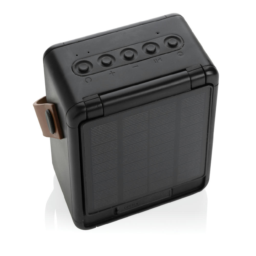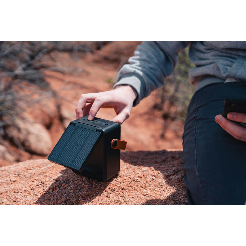 Leistungsstarker kabelloser 12W-Lautsprecher aus RCS-zertifiziert recyceltem ABS mit integriertem großen Solarpanel. Recycelter Inhalt insgesamt: 16%, bezogen auf das Gesamtgewicht des Artikels. Der Lautsprecher ist mit einem 2000mAh-Akku für bis zu 8 Stunden Spielzeit sowie BT5.3 für eine klare und stabile Verbindung auf bis zu 10m ausgestattet. Mit Mikrofon und Anruf-Annahme-Funktion. Aufladegeschwindigkeit Solar: 5V/300mA. Inklusive RCS-zertifiziert recyceltem TPE-Ladekabel. Artikel und Zubehör 100% PVC-frei.
