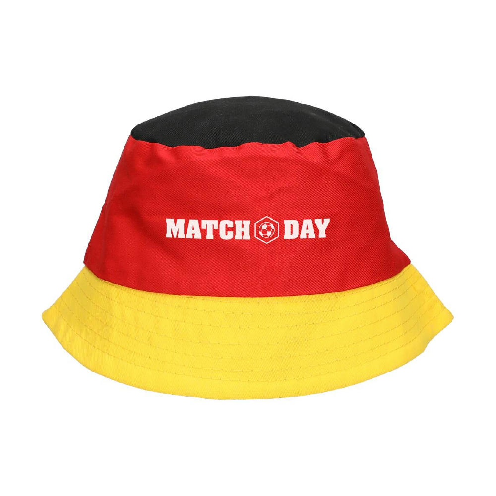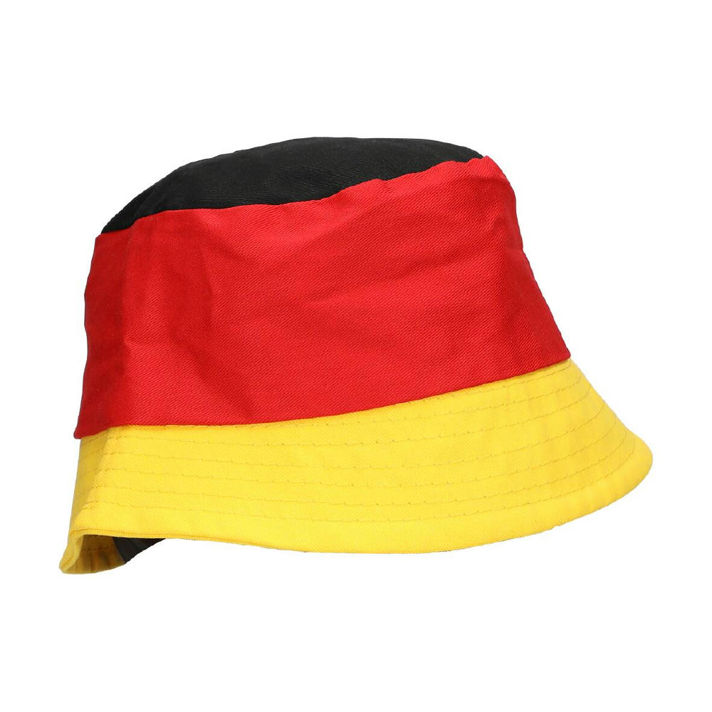 Nicht nur bei Sonnenschein ein Hit. Leichter Sonnenhut in Deutschlandfarben in Fischerhut-Optik aus 100 % Baumwolle. Trendig und angenehm zu tragen.