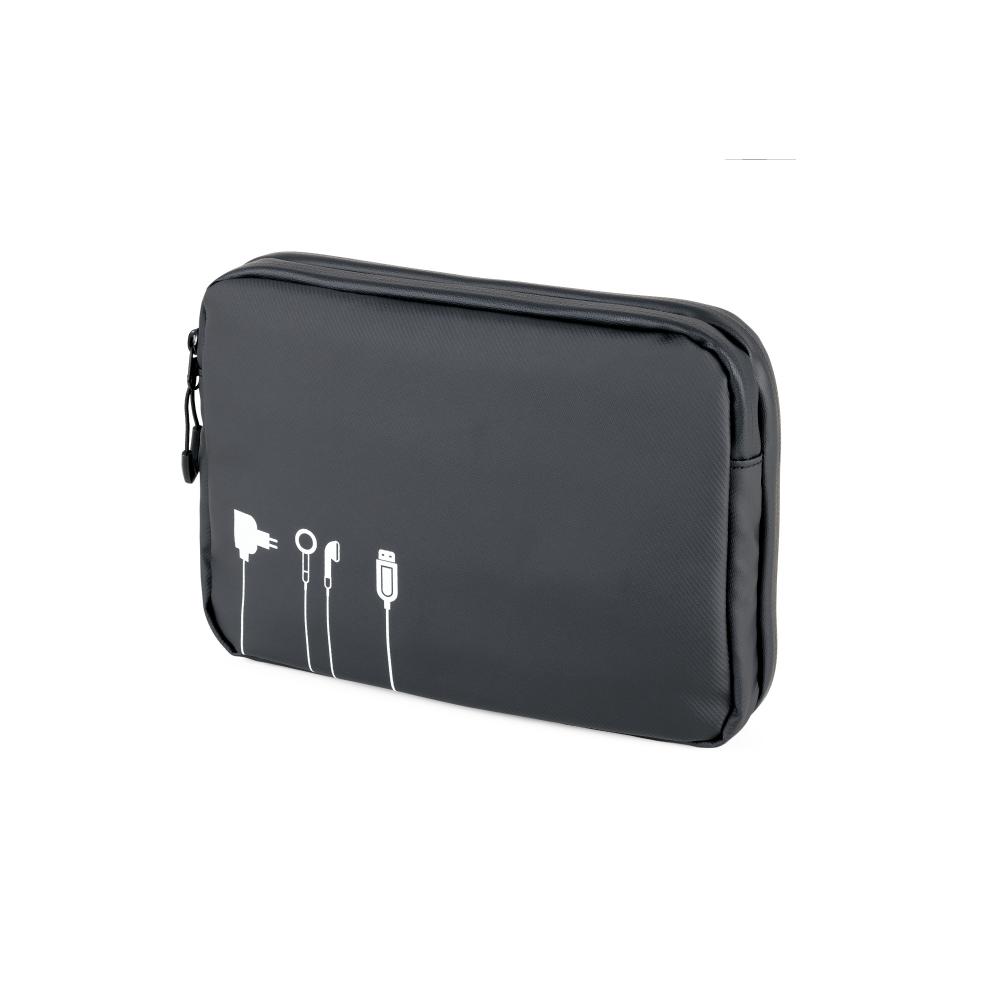 Kabeltasche für Elektronikzubehör, 3 Fächer mit wasserabweisenden Reißverschlüssen, großes Fach mit 2-Wege Reißverschluss und 6 Netzfächern in 2 verschiedenen Größen, Einschubfach, Seitentasche, Aufdruck: Adapter, Kopfhörer, Ladekabel, widerstandsfähiges Material, spritzwassergeschützt (Wasserdichtheitsgrad IPX4).