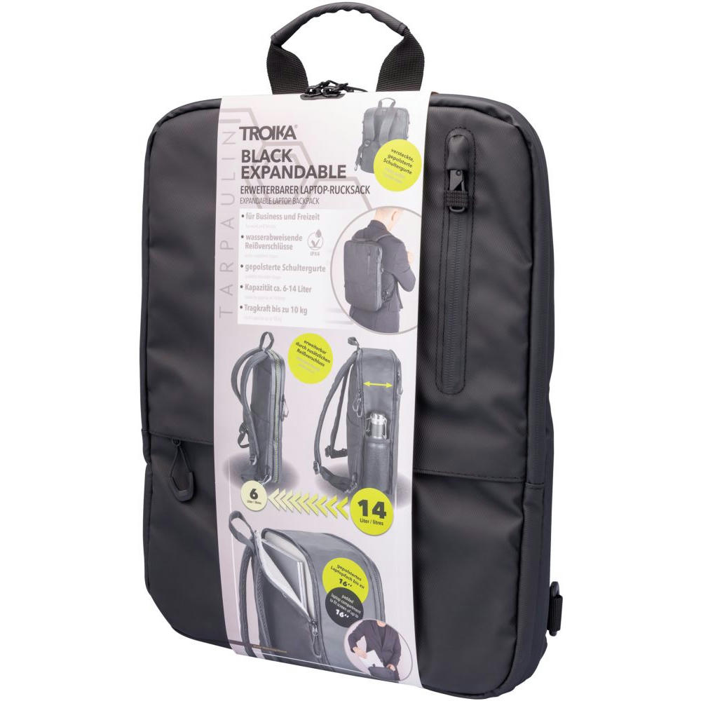 Bringt Ordnung in Ihre digitale Arbeits-und Freizeitwelt. Laptopfach bis zu 16". Durch zusätzlichen Reißverschluss erweiterbar von 6 auf 14 Liter. Fronttasche mit Diebstahlschutz und Karabiner. Verstärkter Standboden, Schlaufe zur Befestigung am Trolley, Tragegriff, versteckte Rucksackgurte.