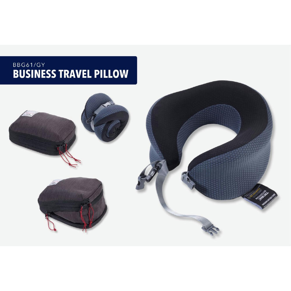 Nackenkissen in Kompressions-Tasche, Kissen platzsparend einrollbar (mit Klick-Verschluss), Memory Foam (Memory-Schaum): dauerhaft formstabil, behält ursprüngliche Nackenkissen-Form nach Einrollen, für Zug, Auto, Flugzeug, Sofa, Bezug abnehmbar/waschbar, stabilisiert/entlastet den Nacken- und Schulterbereich durch optimale Stützung des Kopfes, STANDARD 100 by OEKO-TEX®, Polyester.