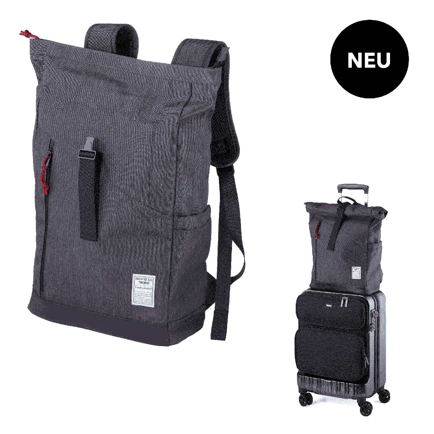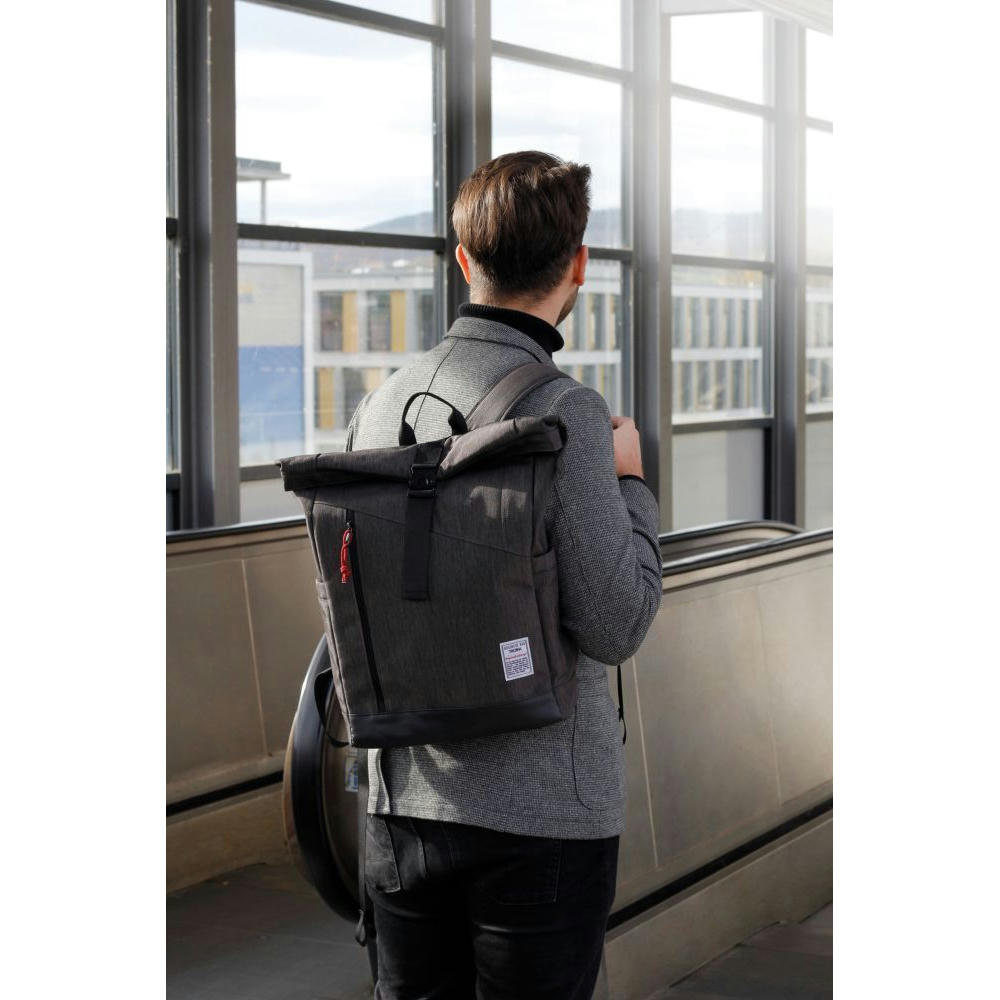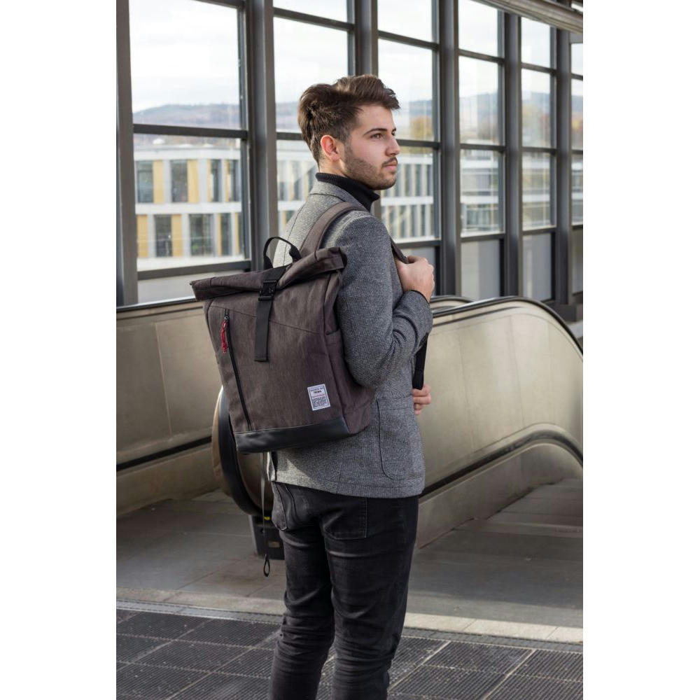 Mit Steckverschluss aus Metall, Hauptfach mit Reißverschlussfach und 2-fach unterteiltem Einschubfach mit Klettverschluss, Fronttasche mit Reißverschluss, 2 Seitentaschen, rückseitiges Geheimfach, gepolsterte Schultergurte, abgesetzter Standboden. Tragkraft bis zu 15 kg. Material: Polyester. Farben: anthrazit, schwarz.