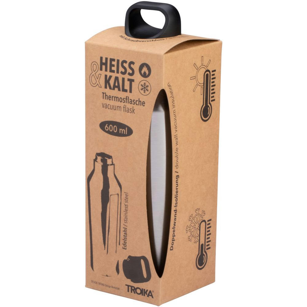 Thermosflasche Doppelwand-Isolierung mit Vakuum 600 ml, lebensmittelecht matt, silber- oder titanfarben