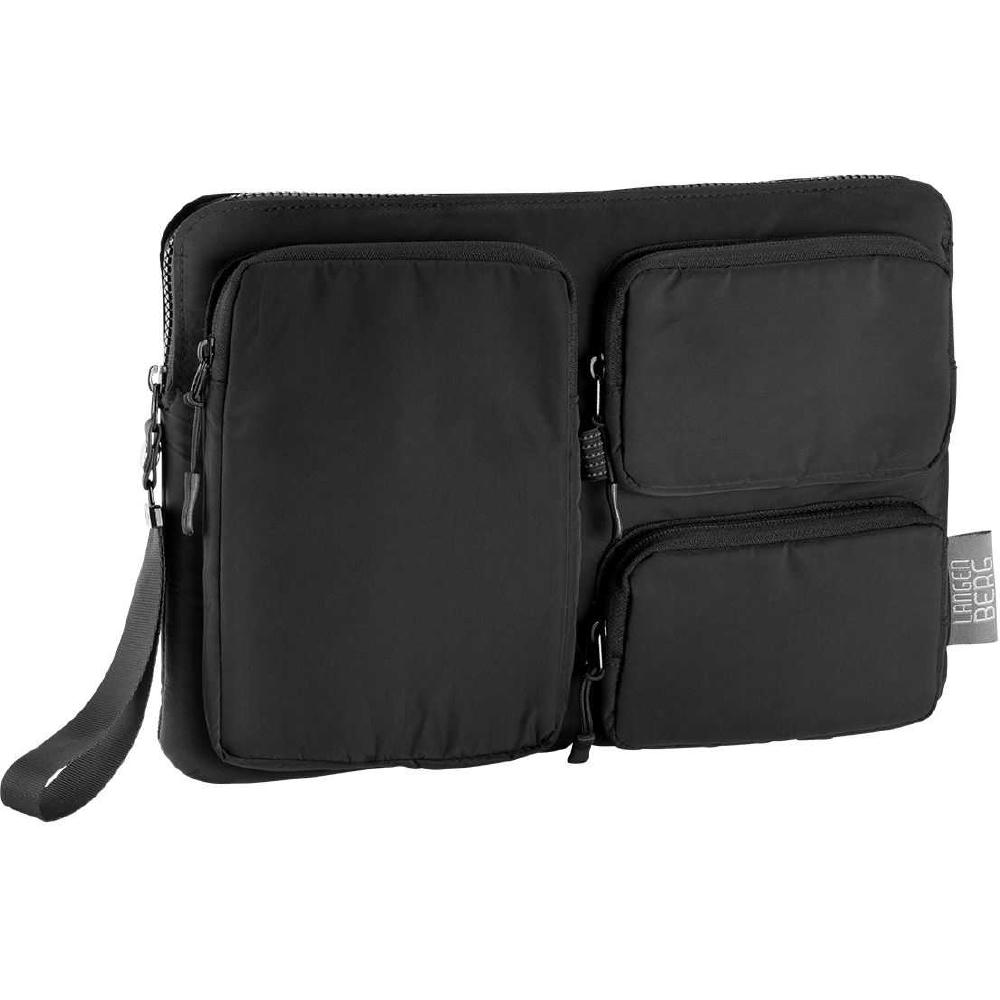 gepolstertes Reißverschlusshauptfach (passend bis 11") senkrechte Reißverschlussvortasche ca. 20 x 14 x 2 cm zwei waagrechte Reißverschlussvortaschen ca. 9,5 x 14,5 x 2 cm Volumen: ca. 2l