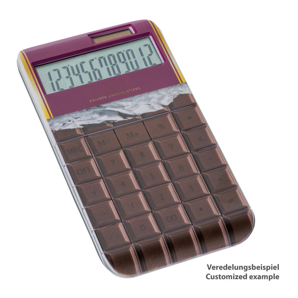 Mehr geht nicht: Vollflächige Bedruckung mit UV-Print, komplett nach Ihren Vorstellungen mit absolut individuellem Design und wenig Aufwand! Fotorealistische Motive werden brillant und wirklichkeitstreu umgesetzt. Texte sind klar und deutlich lesbar. Die Tastatur des Dual-Power-Rechners wird im Layout mit angelegt. Vom Taschenrechner zum Ideenträger!