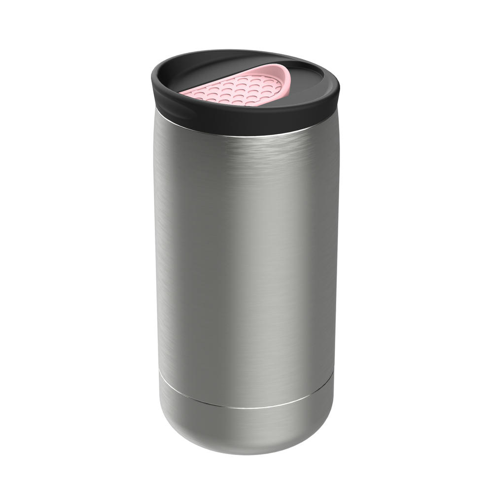Das i-Tüpfelchen ist der BPA-freie, auslaufhemmende Steckdeckel mit farblich wählbarem Verschluss. Der Deckel besteht aus recyceltem PP-Kunststoff und verfügt über einen Schiebemechanismus, der in 17 Farben erhältlich ist. So haben Sie die Freiheit, den Artikel farblich nach Ihrem Stil und CI zu konfigurieren. Alle Komponenten des Bechers lassen sich bedenkenlos in der Spülmaschine reinigen.