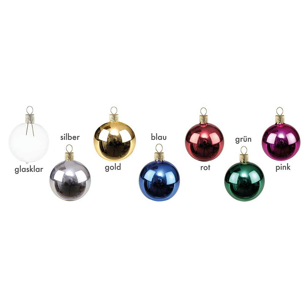 Formschöne, mundgeblasene und handdekorierte Glaskugeln. Zum Aufhängen der 8 cm großen Kugel ist eine Öse aus Aluminium befestigt, wahlweise silber- oder gold-farbig. Kugeln in glänzender oder matter Ausfertigung erhältlich. Bereits ab 250 Stück individuell bedruckbar. Made in Europe.