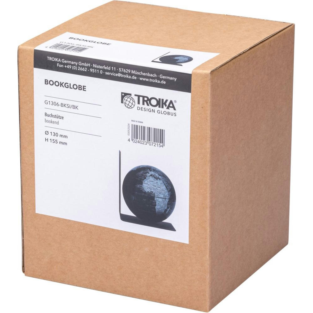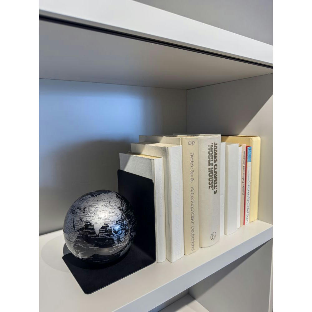 Globus mit Buchstütze aus Metall, magnetischer Globus mit 13 cm Durchmesser, Kunststoff, Metall, matt, schwarz/silberfarben.