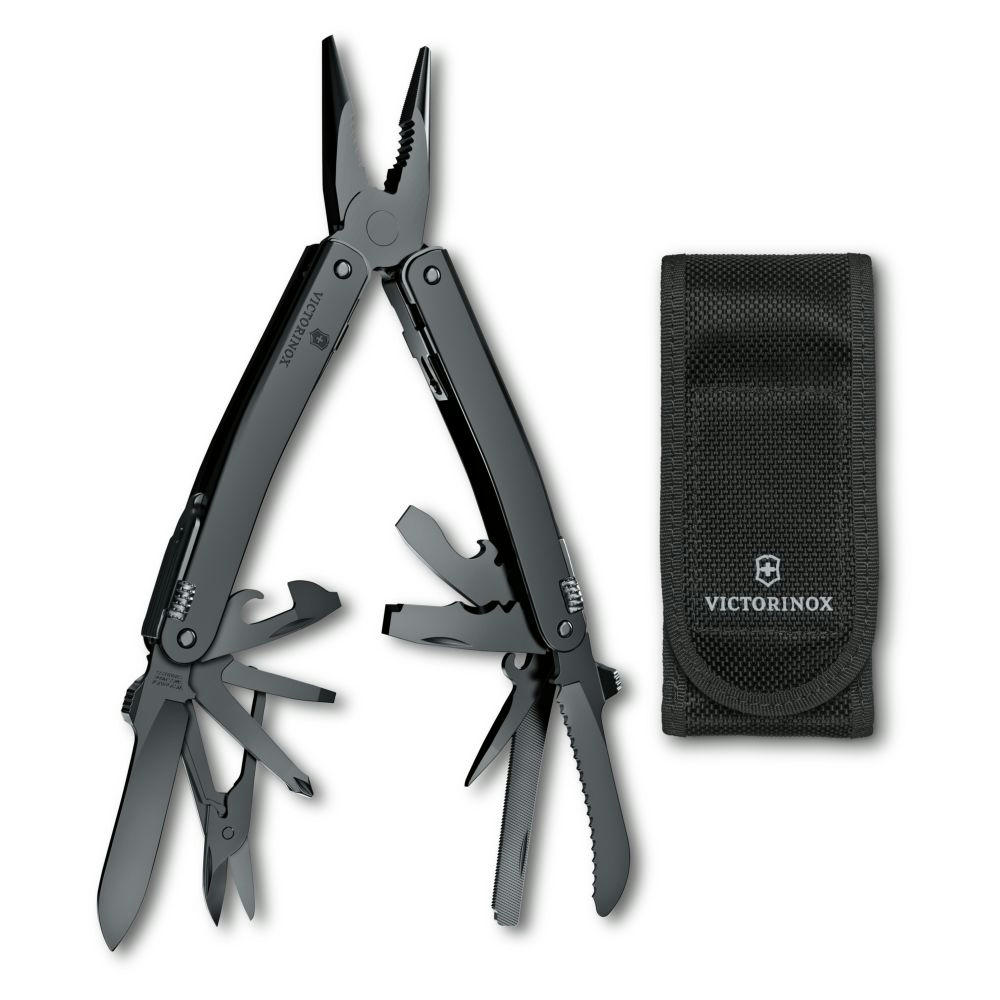Hier verschmelzen praktische Funktionalität, Qualität und Eleganz zum ultimativen Werkzeug. Multifunktionales Tool mit 24 feststellbaren Funktionen, hergestellt in der Schweiz. Mit einhändigem Öffnungsmechanismus für schnellen, einfachen Zugriff auf die große Klinge und den Gurtschneider.