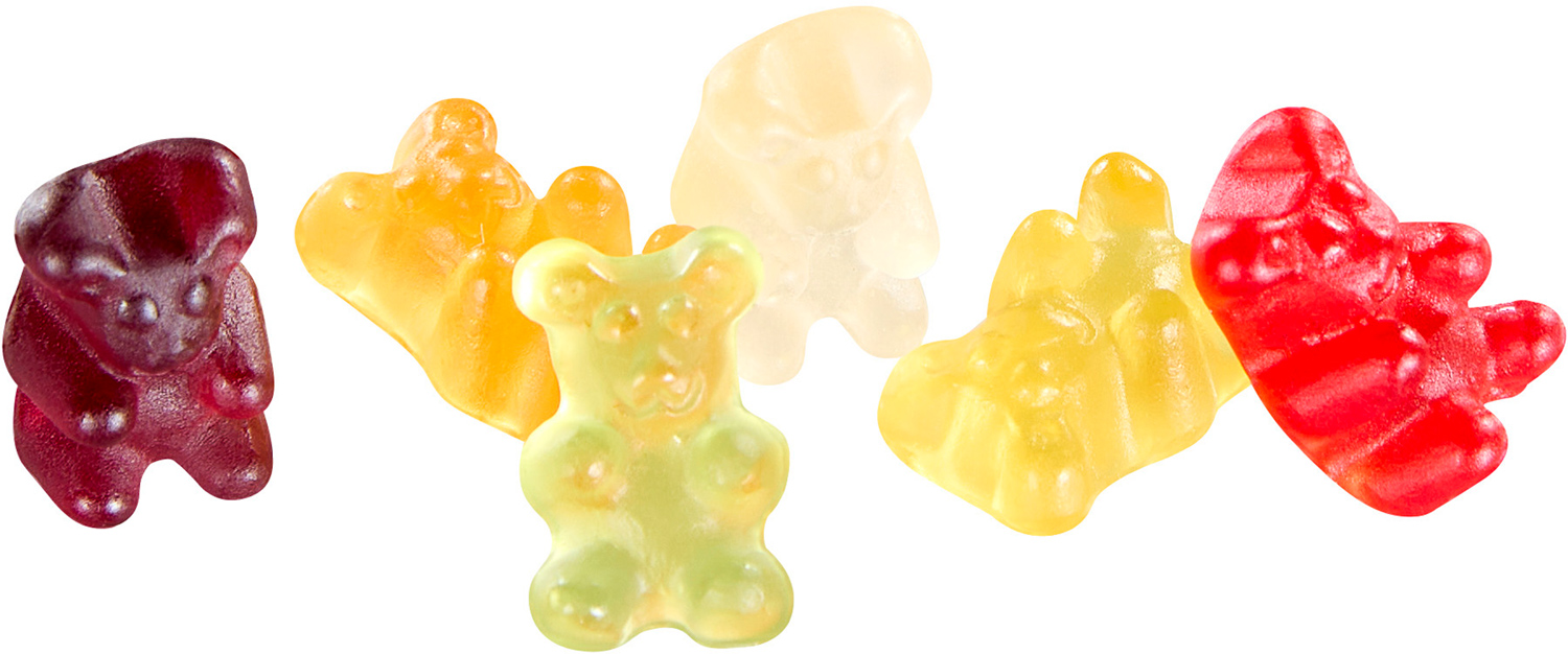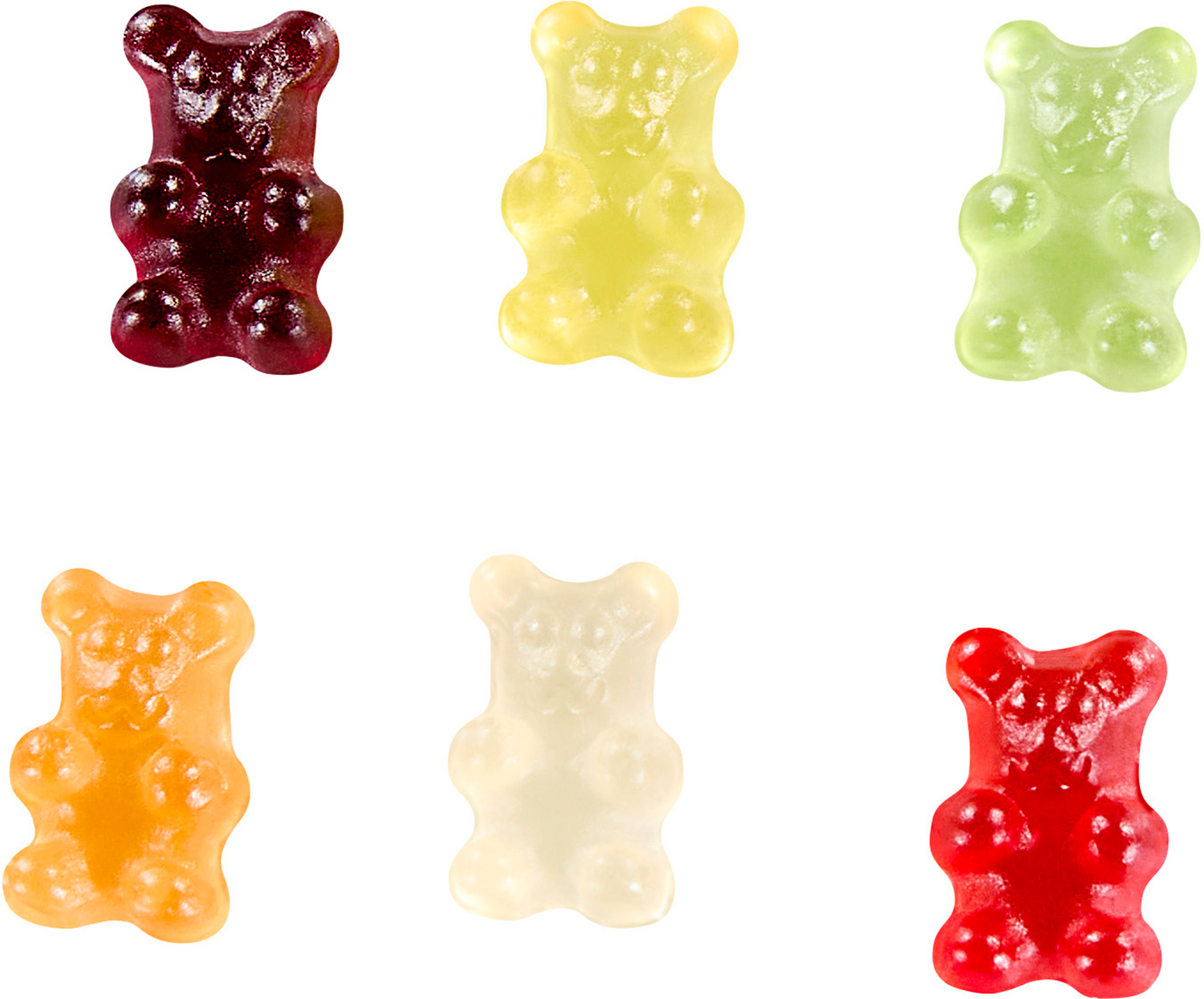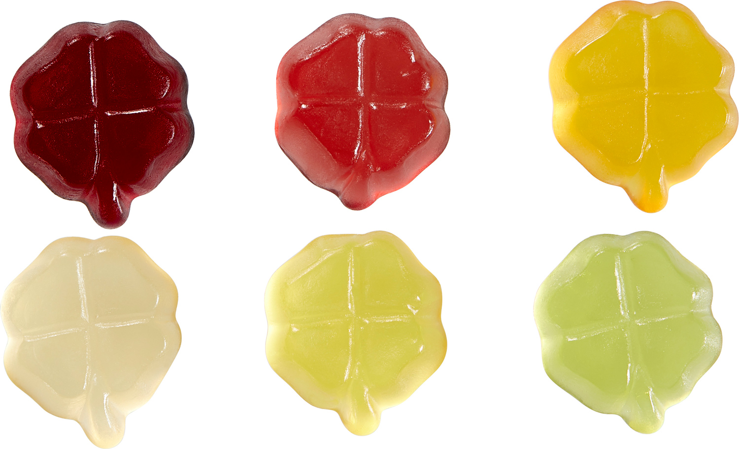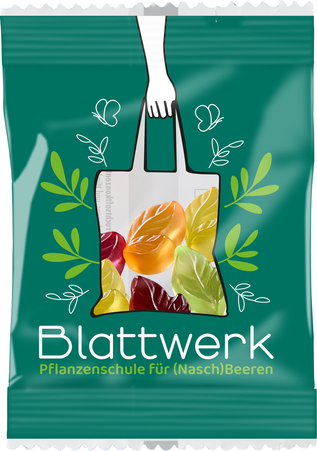 Vegan mit Pektin, mit 10 % Fruchtgehalt aus Fruchtsaftkonzentrat, natürlichen Aromen und färbenden Pflanzenauszügen, farblich und geschmacklich bunt gemischt, in glänzend- oder matt-kaschiertem transparentem, alternativ weißem Werbetütchen verpackt. Kompostierbare Folie gegen Aufpreis möglich. Haltbarkeit: ca. 12 Monate. Inkl. 1–5c-Druck.