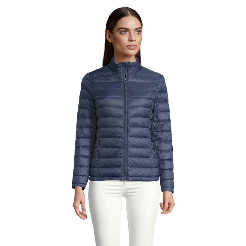 SOL'S WILSON WOMEN, LEICHTE DAUNENJACKE FÜR FRAUEN, Oberstoff und Futter: 100% Polyamid, Wattierung (bitte beachten Sie, dass wir uns in der Umstellung vom Lager befinden): 90% Daunen und 10% Federn, solange der Vorrat reicht. Dann Übergang zu 60% Sorona 40% recyceltem Polyester. POLYAMID 380T, Reißverschlussöffnung, 2 Reißverschlusstaschen vorne, 2 Innentaschen, kleiner hoher Kragen, körpernaher Schnitt, In-Bag-Faltsystem mit Stoppern. Zur Größenanpassung beachten Sie bitte die Größentabelle im Abschnitt Produktdokumentation.