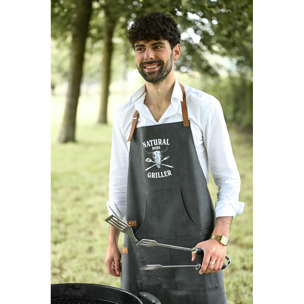 Mit dieser PU Schürze aus mattem Kunstleder sind Sie auf der sicheren Seite. Denn die coole, 83 x 63 cm große Schürze ist robust, hat eine geräumige Vordertasche und kann ideal zu jedem Anlass eingesetzt werden. Vom Grillabend bis hin zu jeglichen Küchenprojekten - diese stylische Schürze aus 100% PU mit 600 gr/m² ist eine solide Wahl! Eine Veredelung ist auf diesem vielseitigen Artikel möglich mit Stick, Transferdruck, Prägung oder Siebdruck. Statten Sie sich ideal aus für Ihr nächstes Projekt, mit der PU Schürze!