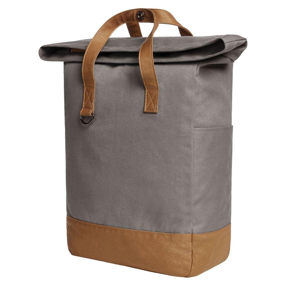 moderner, aufwändig verarbeiteter Überschlag-Rucksack; liebevoll gestaltet mit wertigen Metall-Accessoires und beschichteten Baumwoll-Besätzen; Überschlag-Fixierung mit eingearbeitetem Magnetverschluss; großes Reißverschluss-Hauptfach; Reißverschluss-Innentasche; gepolstertes Notebookfach; zwei flache Einsteckfächer seitlich; vor Zugriff geschütztes, rückseitiges Reißverschluss-Einsteckfach; Handgriffe mit Druckknopf; gepolsterte, längenverstellbare Schultergurte mit elastischer Fixierung für Gurtband